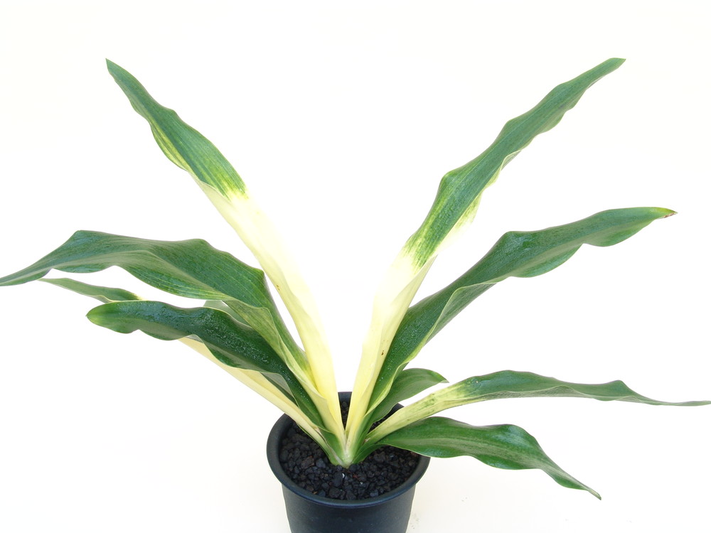 投稿日: 2018年12月28日2018年12月27日 投稿者: 豊明園萬世の光 (ばんせいのひかり) 分類 大葉系統 曙系 作出年代 昭和年 登録 平成 1年 作出者 不明 (鹿児島県) 命名者 宮本松太郎 (鹿児島県) 登録者 広い葉幅に曙柄と縞柄を見せる。性質は強く作りやすい品種。 大型種で農緑色の葉に卵色の曙色現す。性質は強健で作りやすい品種。採光を強く採ると写真のような色に出来上がります。又日光が不足する場合緑の葉が多くなります。露地植え可 実付き良い品種。