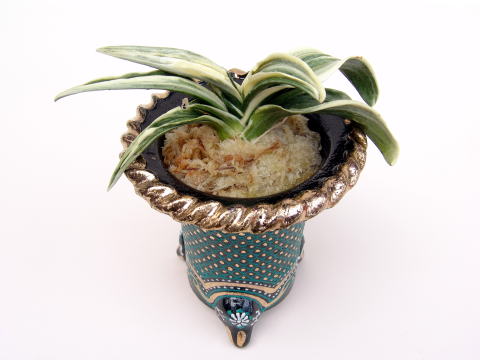 投稿日: 2018年12月29日2018年12月28日 投稿者: 豊明園豊明冠 (ほうめいかん) 分類 羅紗系統 作出年代 昭和16年頃 登録 昭和年 作出者 不詳 (愛知県) 命名者 水野淳治郎(愛知県) 登録者 (愛知県) 豊明冠(ほうめいかん) 4年生 鉢 3.5号 濃緑色の葉に艶消し地の柔らかい地合い、覆輪が全体に白くかかる。葉肉の厚い葉に折り熨斗葉と甲竜を見せる品種、性質は中品種。繁殖は芋吹き