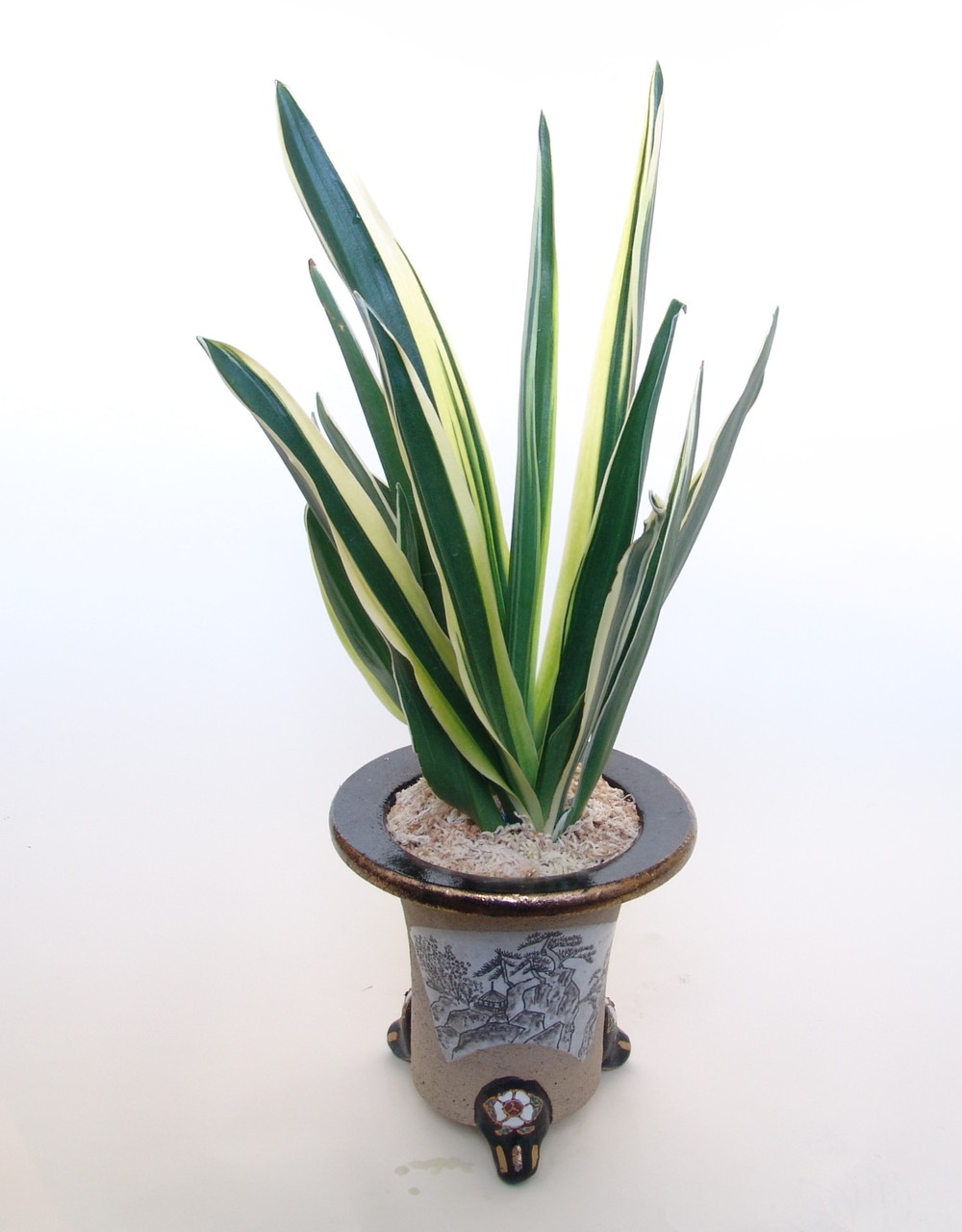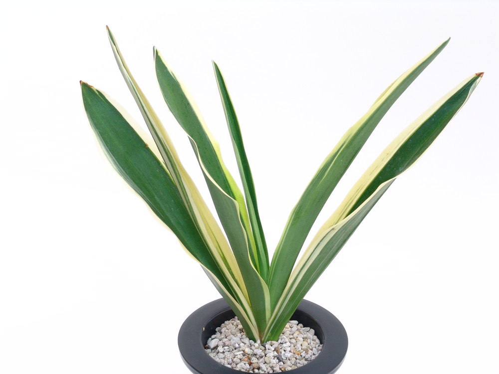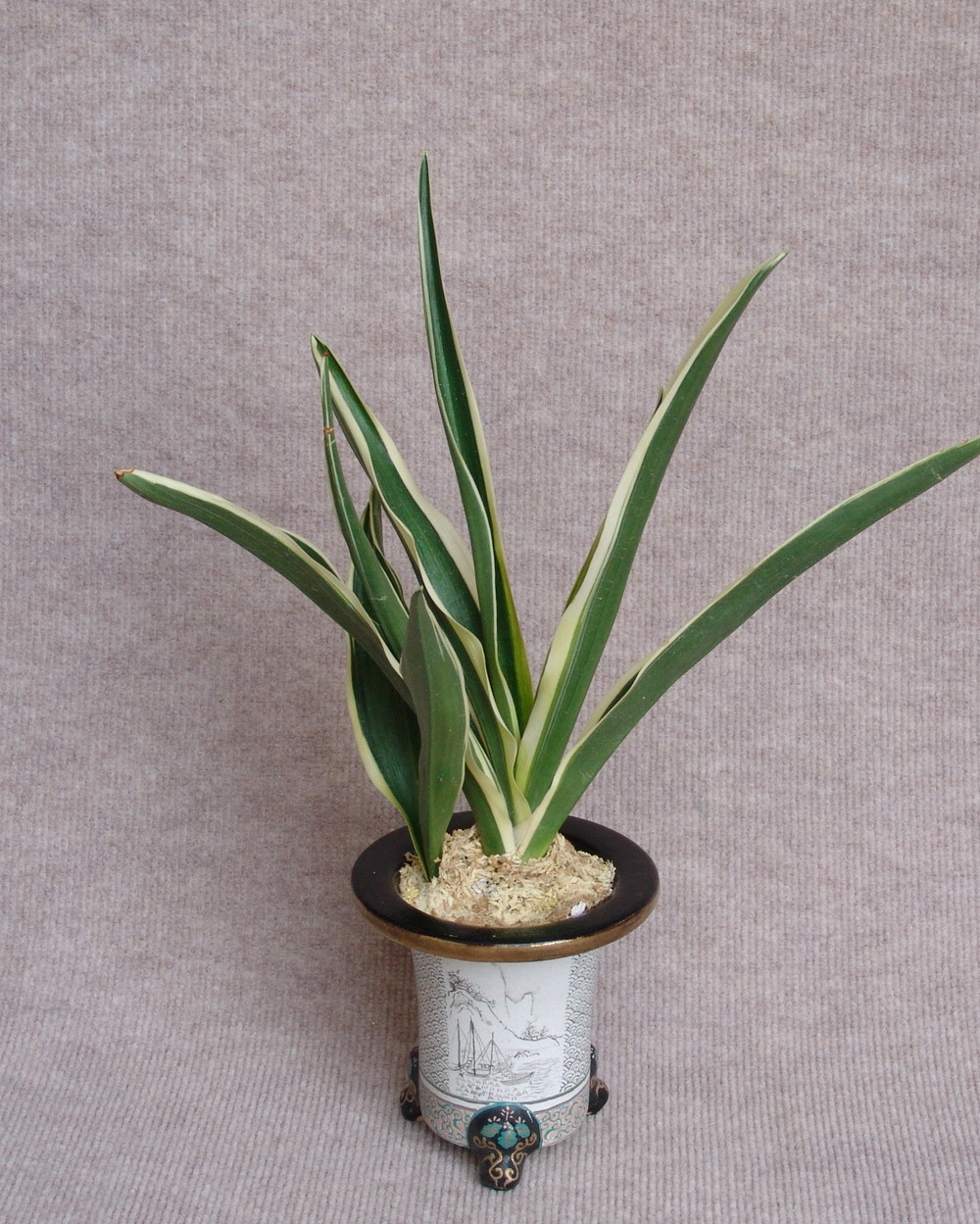 蓬莱山(ほうらいざん) 5年生 鉢 6.0号 葉肉厚く中立ち葉で深い覆輪を見せます。性質は普通品種。根が太いため肥料を吸いやすい