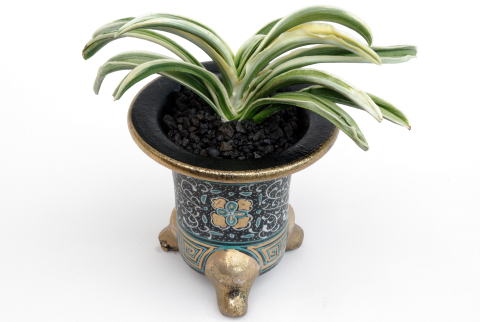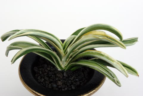 投稿日: 2018年12月29日2022年2月23日 投稿者: 豊明園大和 (やまと) Yamato 分類 羅紗系統 作出年代 昭和20年頃 登録 昭和47年 作出者 (愛知県) 命名者 服部弘 (京都市) 登録者 服部弘 (京都市) 羅紗地系の中型種。葉は淡い緑色で白い覆輪が深くかかり、葉先に丸みがある。葉芸は背の低い甲竜、二面竜を現し、ときには本剣を出す。性質はやや弱く、繁殖は普通。 濃緑色の葉に深覆輪折り熨斗芸を見せる品種