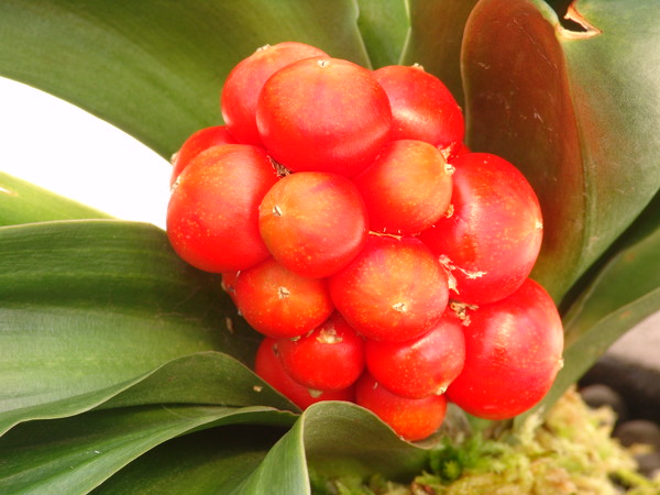 おもと品種 雪月花(せつげっか) 12月6日の写真 艶やかな深紅の実
