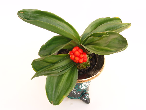 万年青の実を毎年楽しんでいる人は、万年青を3~8本立の大株にして、どれかが花芽がくるようにしています。