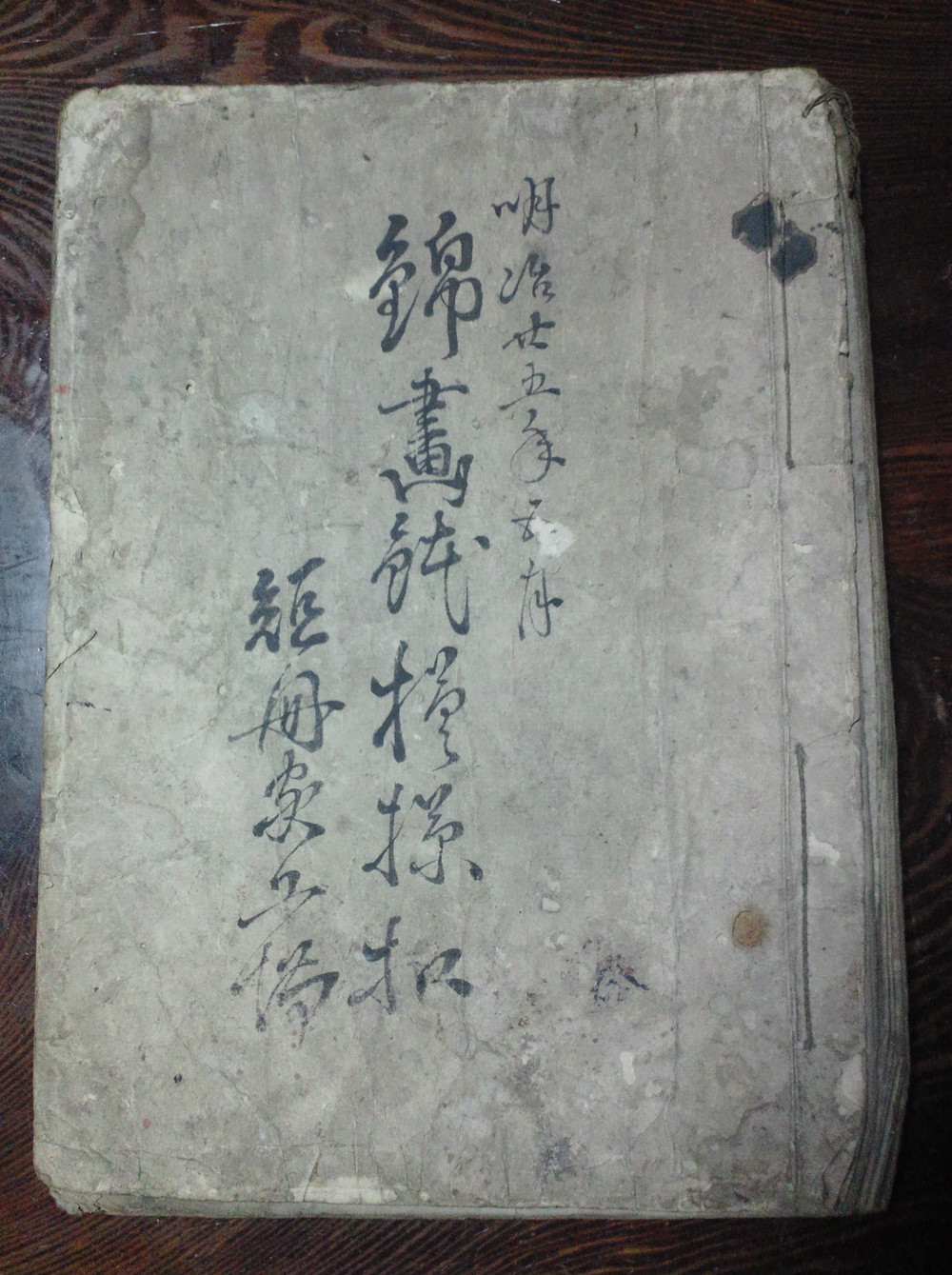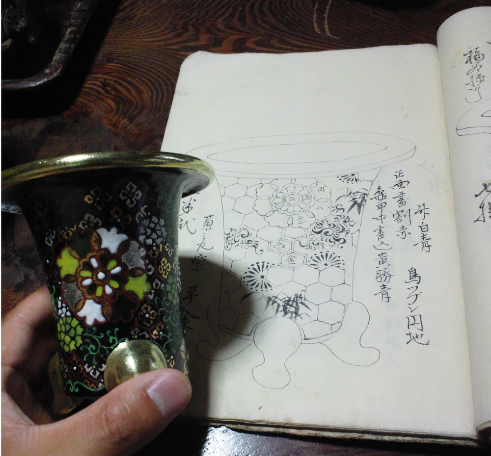短冊家 先代、五龍時代のデザイン帳なんと書いてあるかといいますと、明治25年5月 錦画鉢模様控 短冊屋工場と書いてあります。