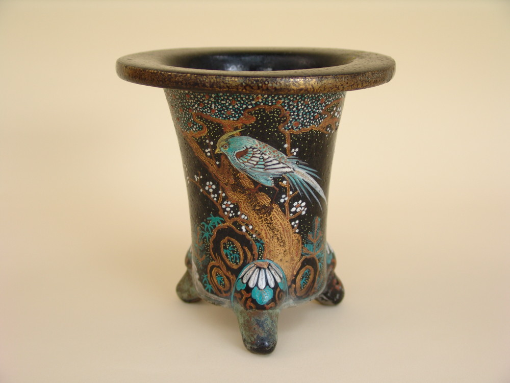 そこで、最近人気なのが、昭和初期以前に作られた古鉢。時代乗りや鉢の持つ雰囲気はいうことなしですが、現代にはない個性的な形や美しい絵付け•色彩が特徴です。現存する数も限られていることから、入手は非常に困難です。値段も少々張りますが、見かけたら是非入手しておきたいものです。