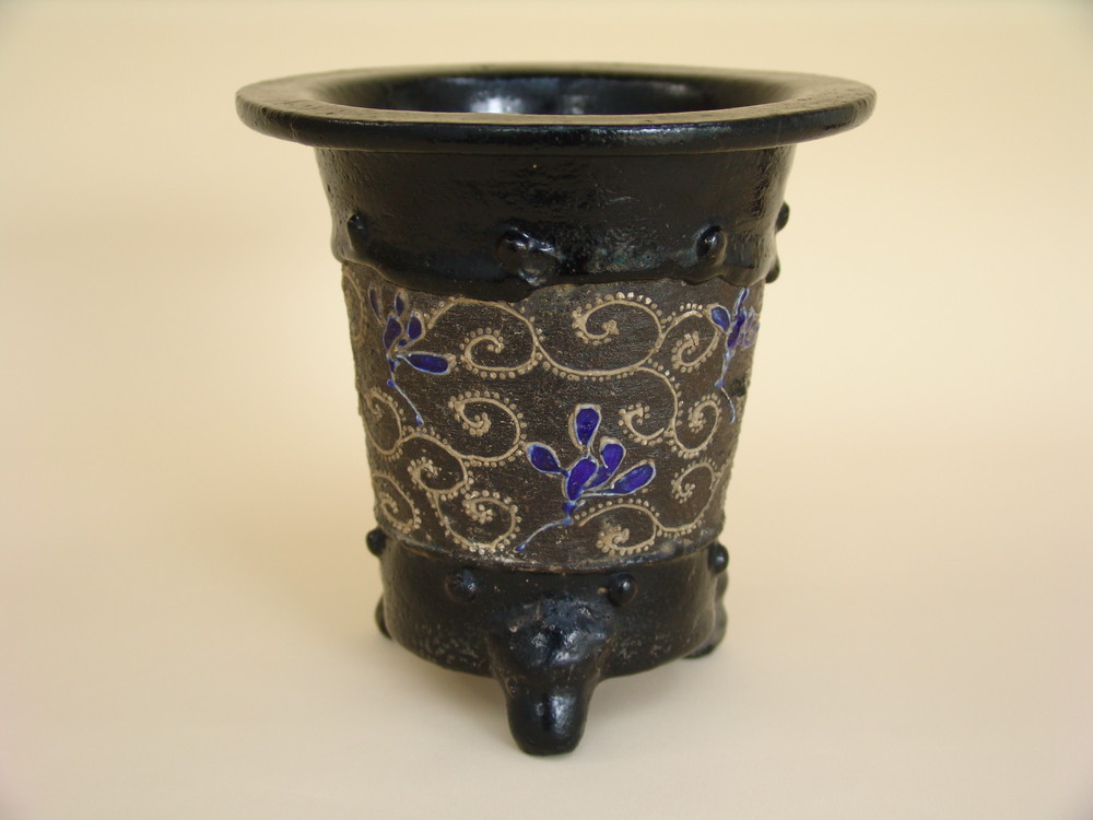 太鼓胴藤蔓花絵鉢 江戸後期 5.3号