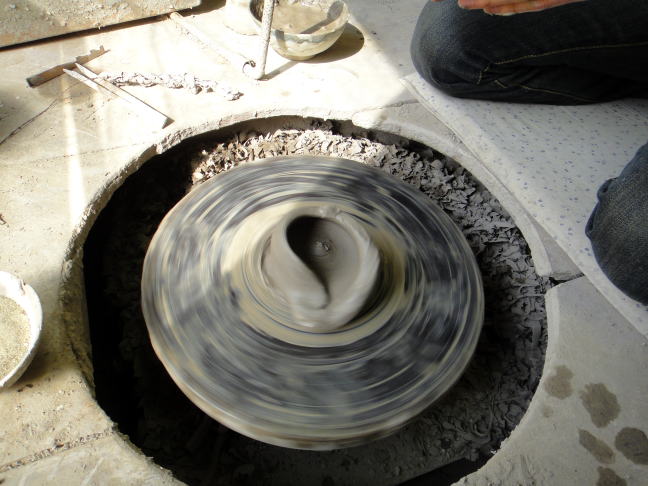 職人さんは簡単そうにやるのでできるかな、なんて考えが甘かったです。脇をしめてとても力が要りますし、上に持ち上げるのにも相当な技術が要りますね。この上、鉢の形(細い鉢か、太い鉢か、など)や生地の薄さを考えたりして一つの鉢が出来てきます。