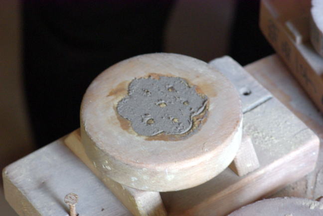 足を、三方向、均一に付けるのも、また、高さを揃えるのも難しいです。足付けだけでも三年は修業しないときちんとした製品にはならないそうです。これから黒鉢なら、黒の釉薬をぬって焼いたり、錦鉢なら絵柄をつけたりと、まだまだ鉢作りの工程は続きます。