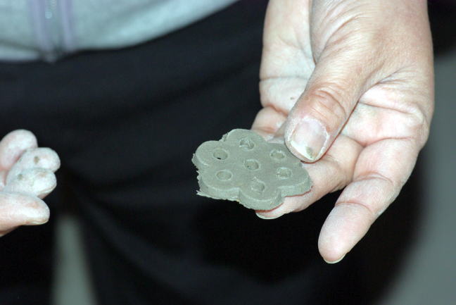 ものの数秒で足にして、付けていきます。まさに職人の技。私も弟もやらせていただきましたが、まず足の形になりません。それでもがんばってやってみても、だんだんと土の水分が乾いてきて使い物にならなくなってしまうそうです。スピードと正確さが必要な作業です。