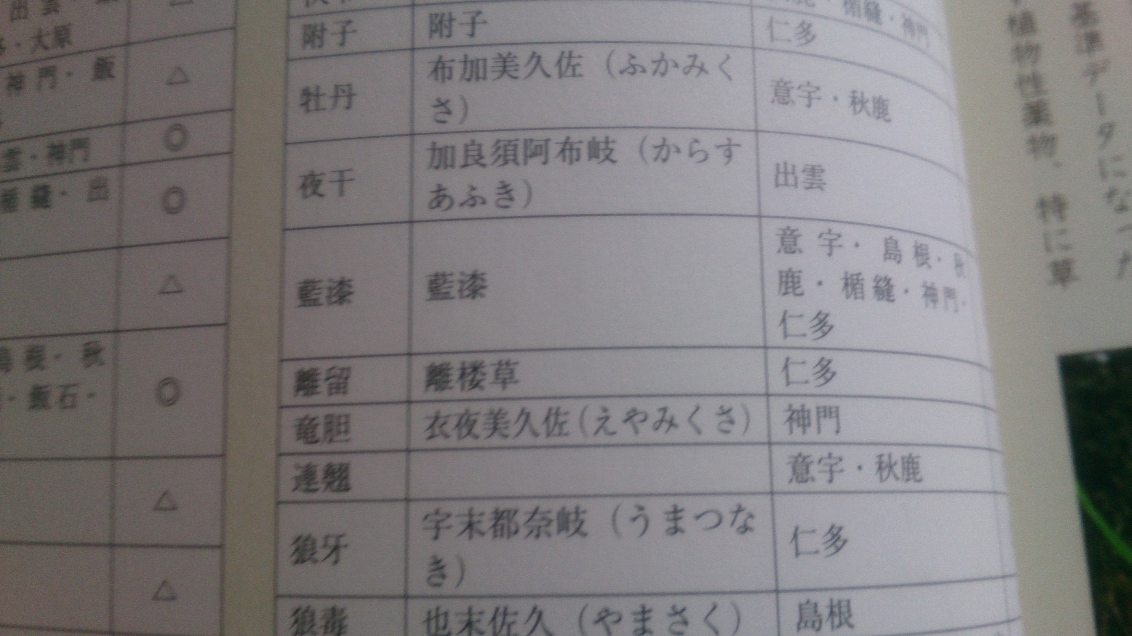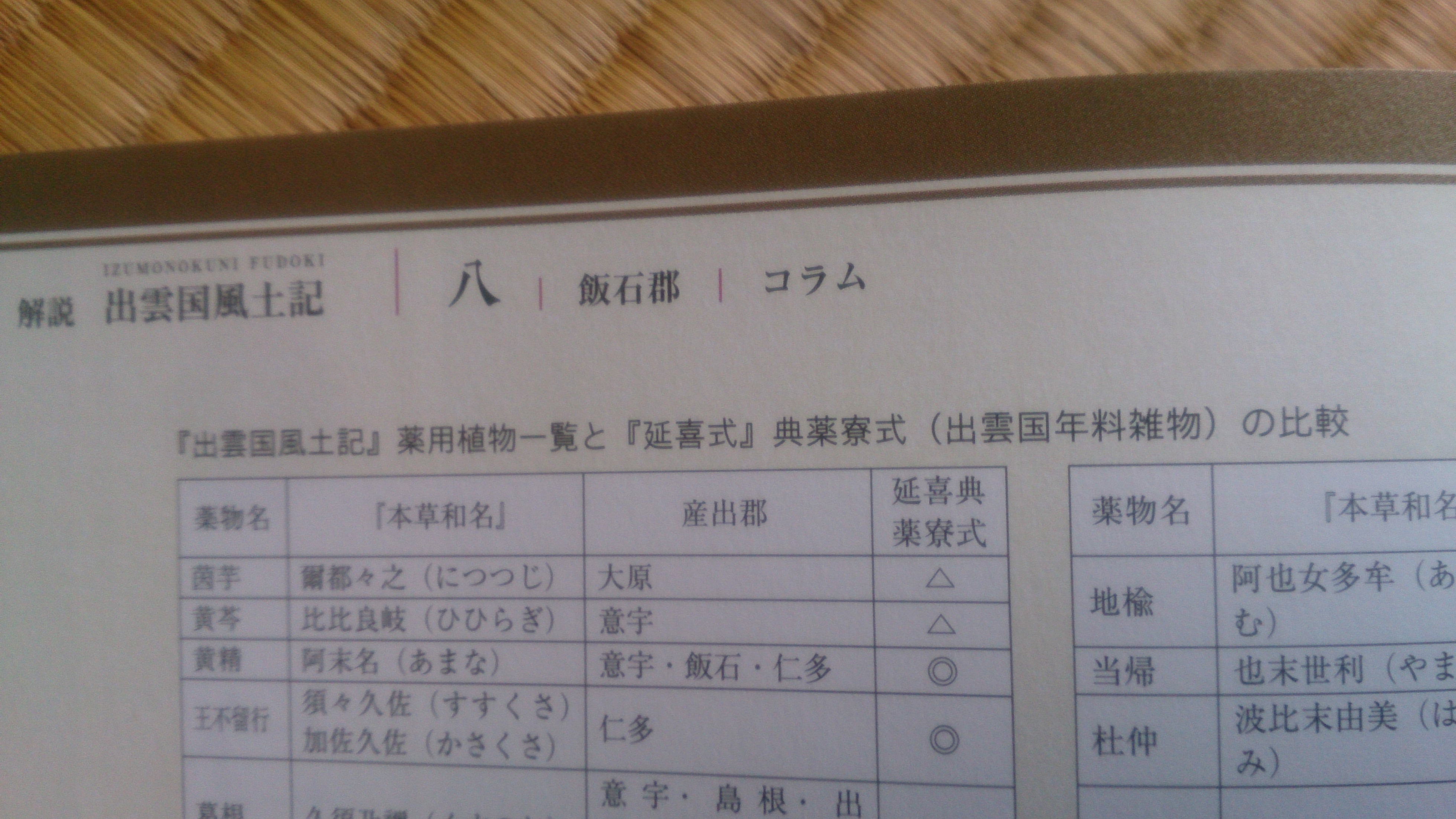 出雲国風土記 薬用植物一覧と 延喜式 典薬寮式(出雲国年料雑物)の比較