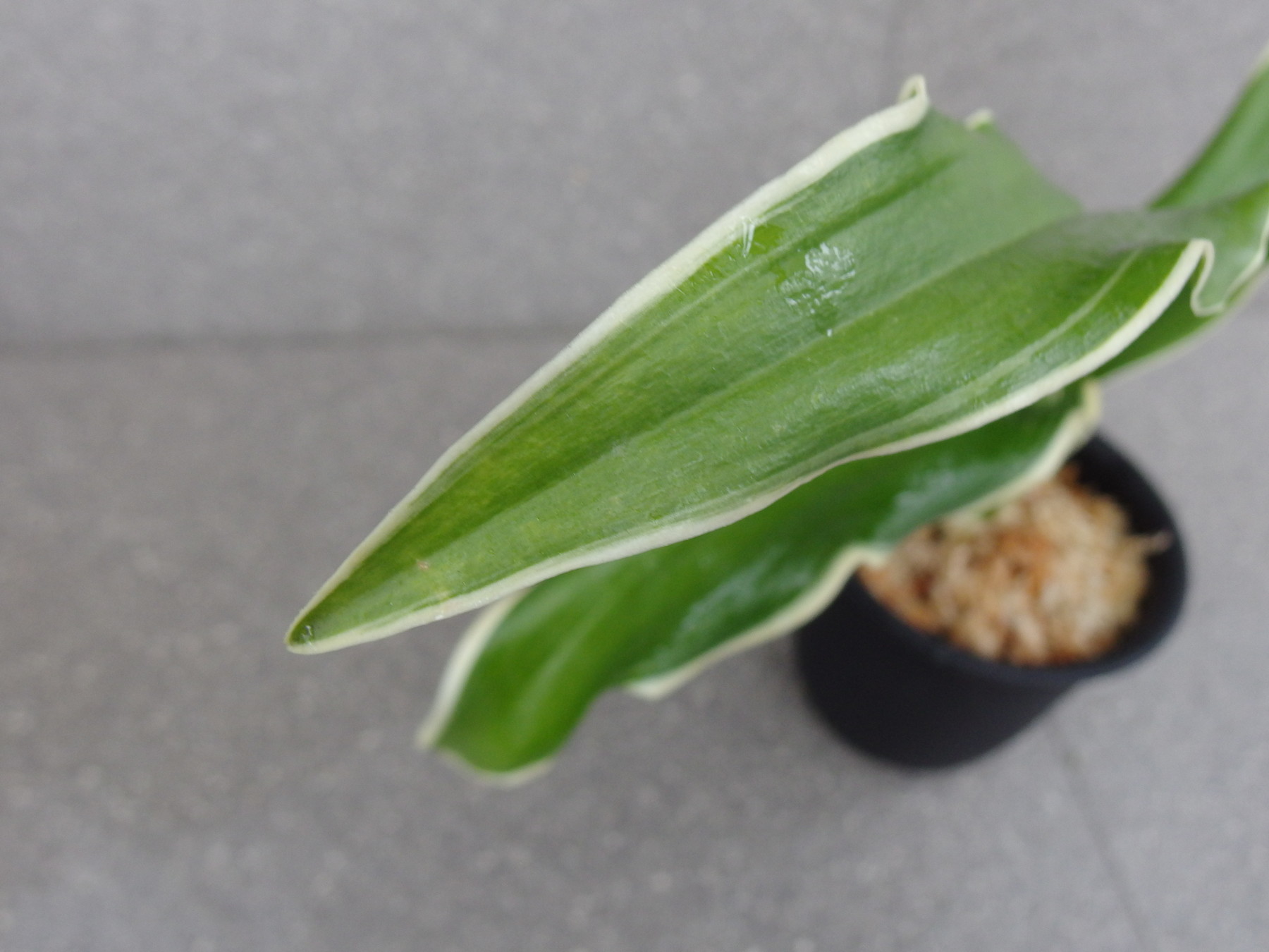 覆輪の白さ、波葉になる葉にも特徴があります。