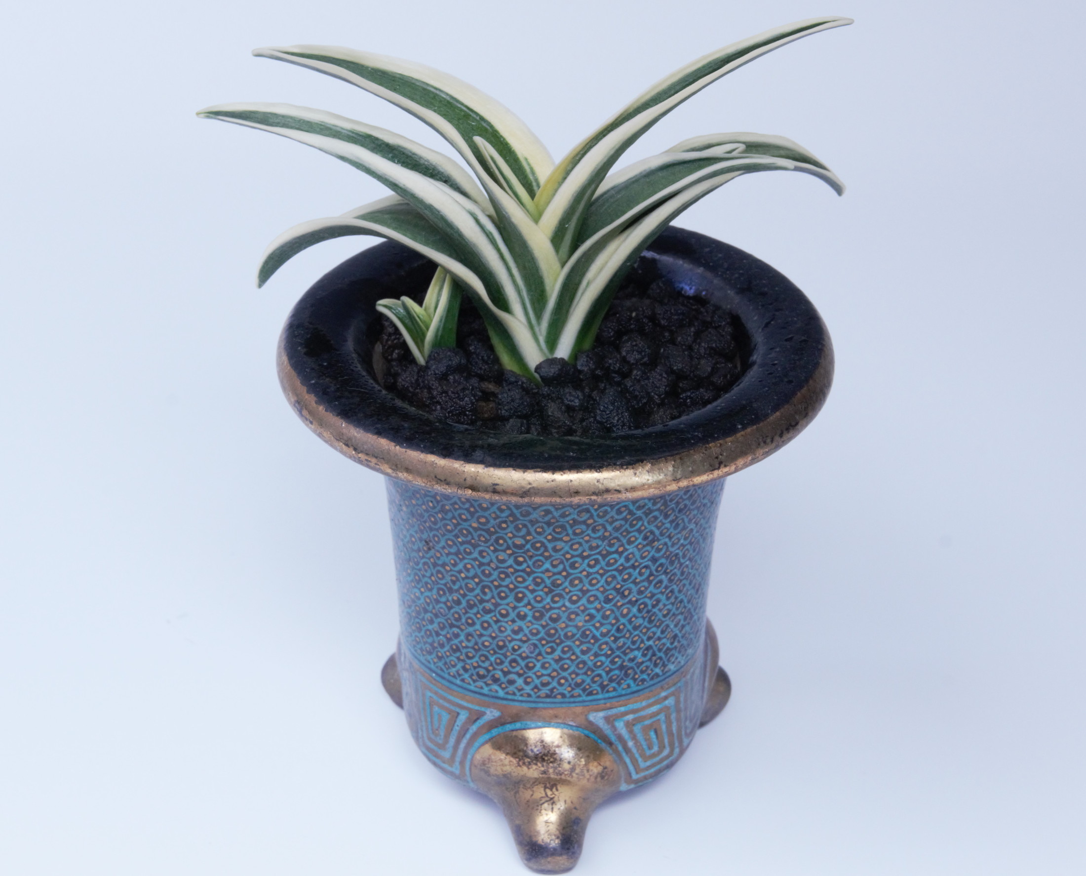 投稿日: 2020年1月29日2022年2月23日 投稿者: 豊明園瑞光 (ずいこう) Zuikou 分類 羅紗系統 作出年代 昭和15年頃 登録 昭和47年 作出者 不詳 命名者 庄知美(大分県) 登録者 庄秀男(大分県) 葉長6㎝、葉幅2㎝内外の小型種。葉先鋭く、濃紺緑色の緻密な地合い に白黄色の深い覆輪をかけ端正な姿、葉繰りが極めて良く襟元から葉先に向かって尖り、葉に力があり、容姿端麗で葉姿の乱さないきれない美しい品種。 性質は強健で、採光・施肥ともに強めで作りやすい。 まだ数少ない美麗種
