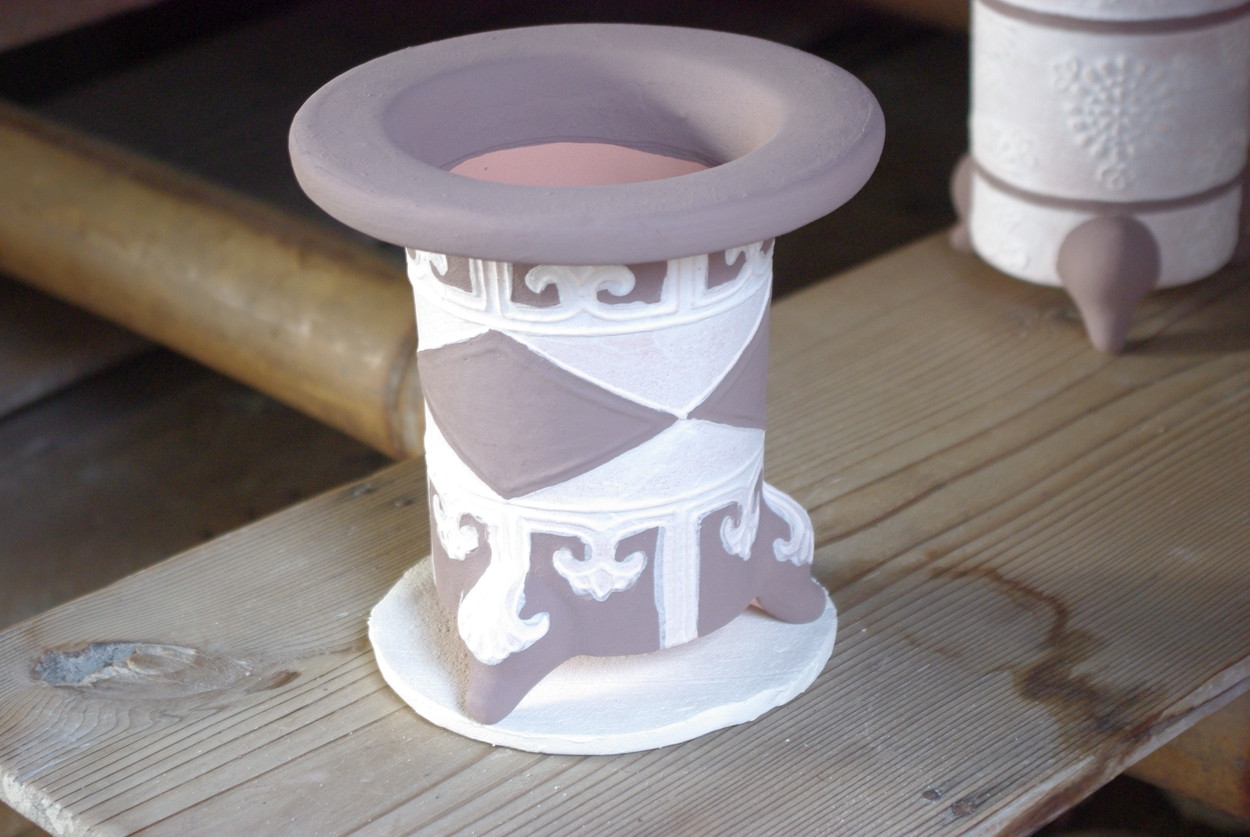 多くの菱紋をあしらった万年青の鉢があります。菱紋について
