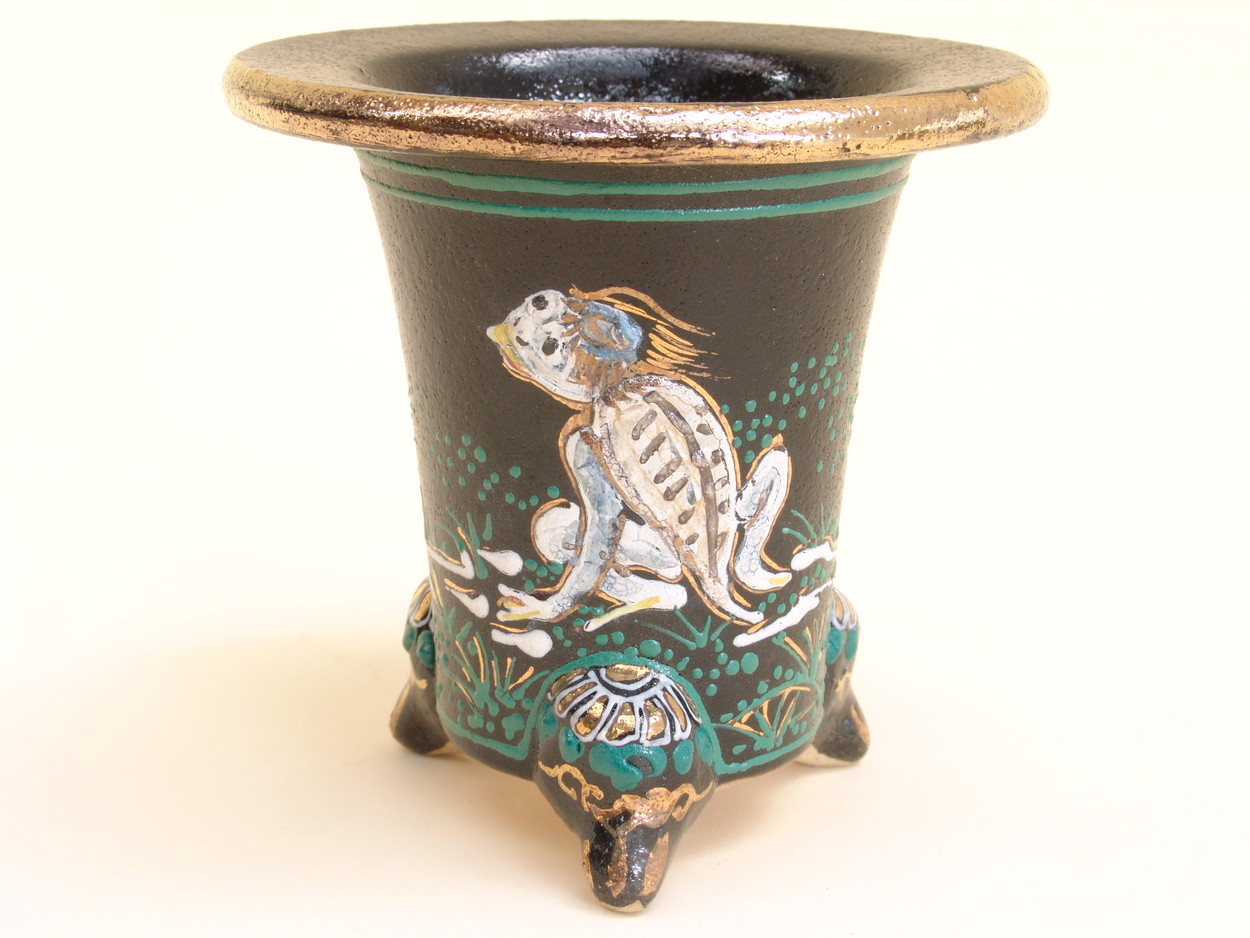 縁起の良い万年青にあう、縁起の良い鉢を描かれました。