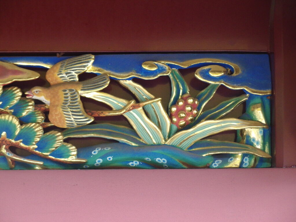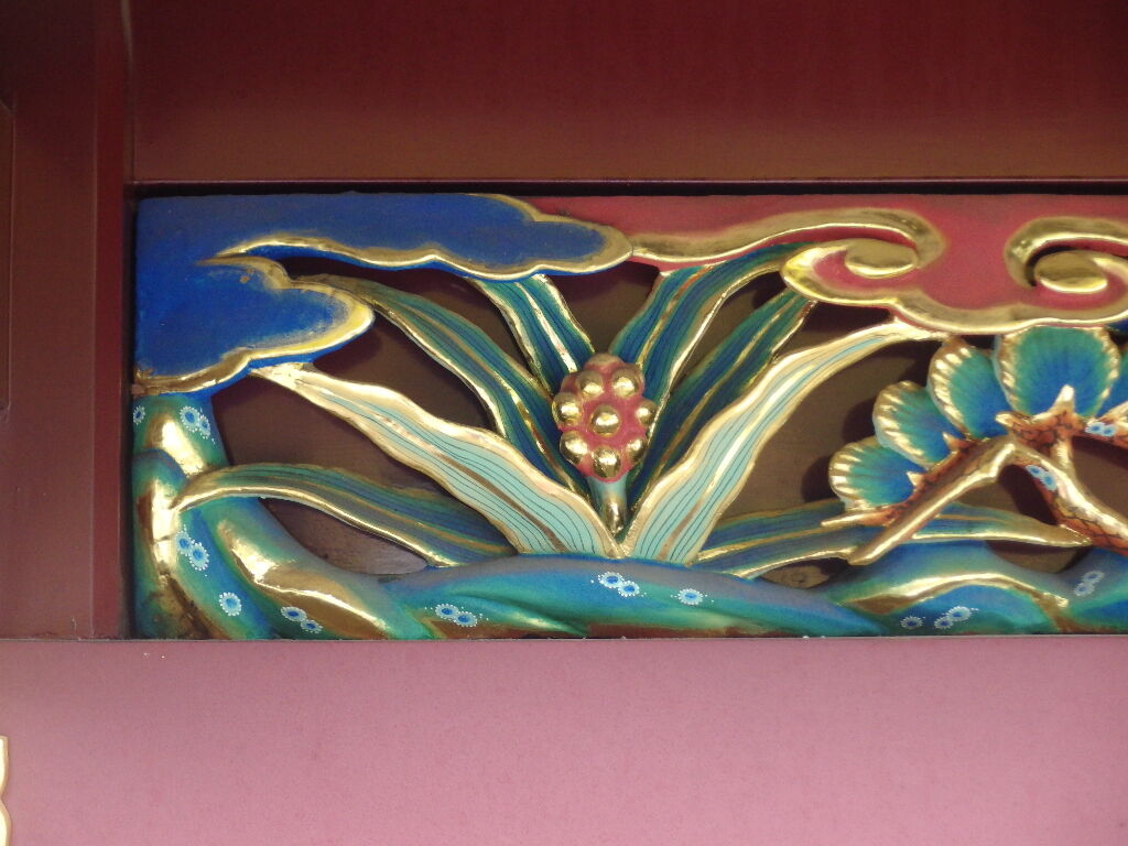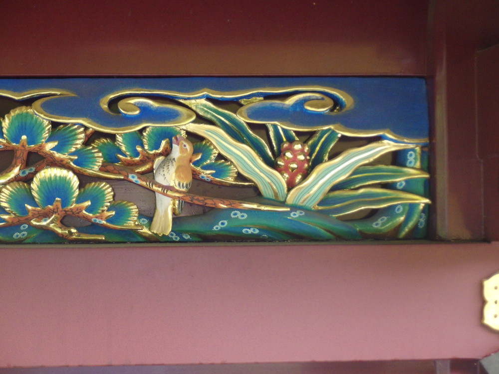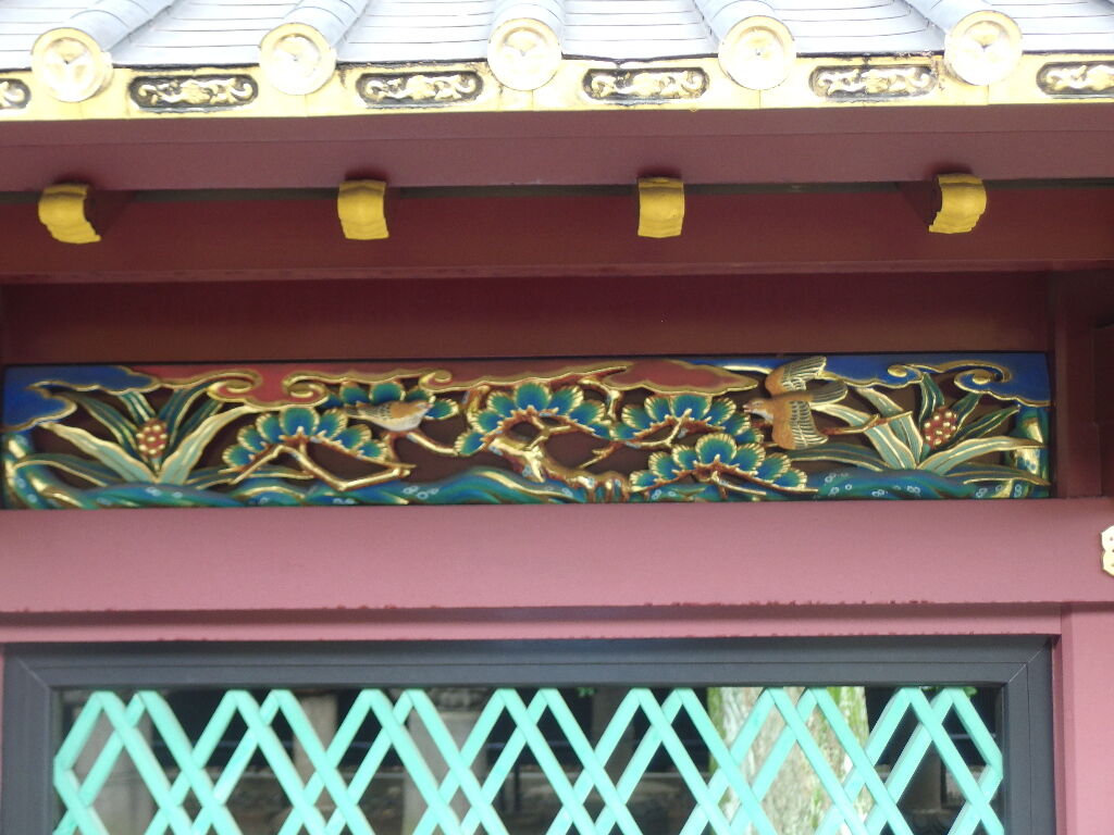 内側外側に200枚以上の動植物が彫刻された物。本殿はじめほとんどの建造物は三代将軍家光が造営替えをしたものだそうです。4か所に万年青の彫刻が確認されました