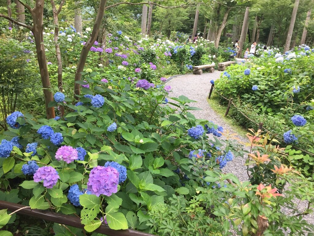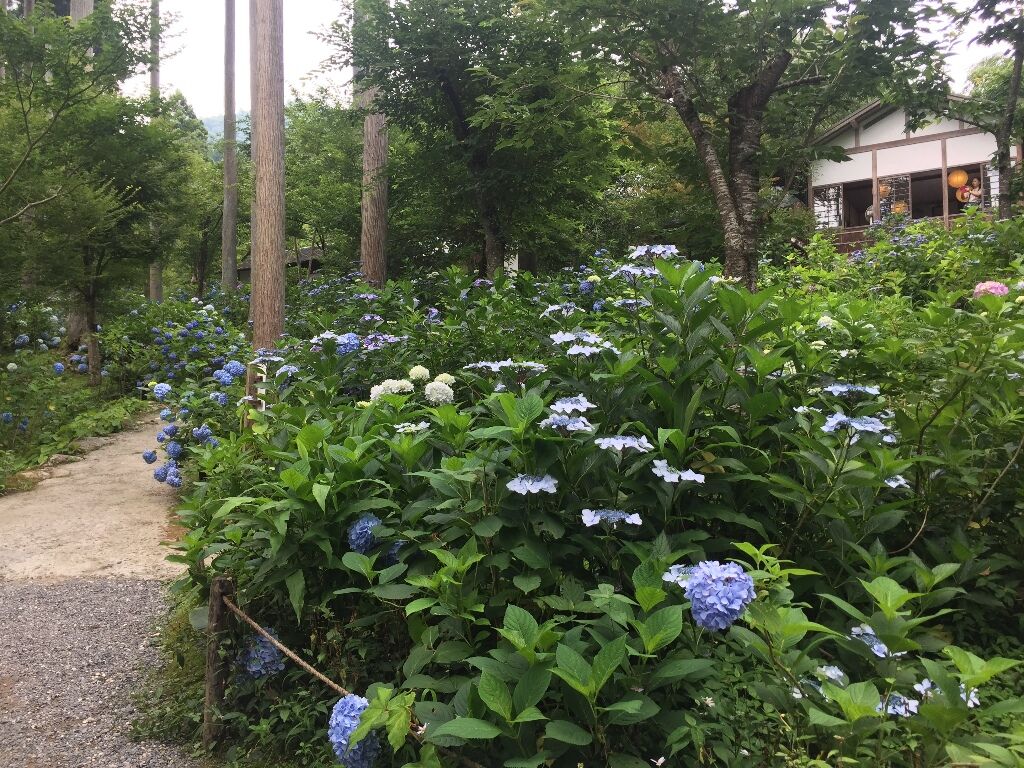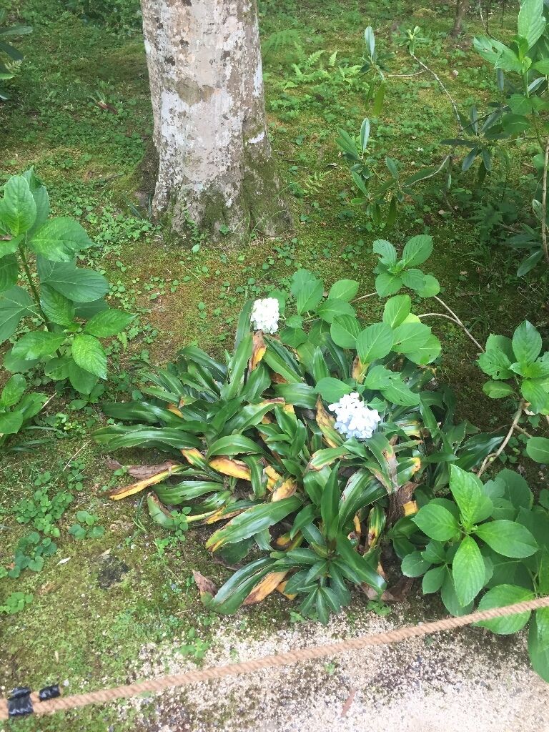 京都 大原 三千院のおもと 紫陽花 アジサイの中のおもと 力強く群生していました