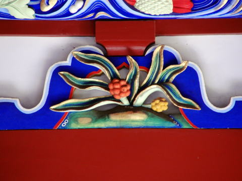 江戸時代に造られたおもとの彫刻で、素晴らしい美しさですね。I氏は宮司さんにこの彫刻の復刻塗り氏を紹介してもらい、万年青の彫刻について聞かれたそうです。