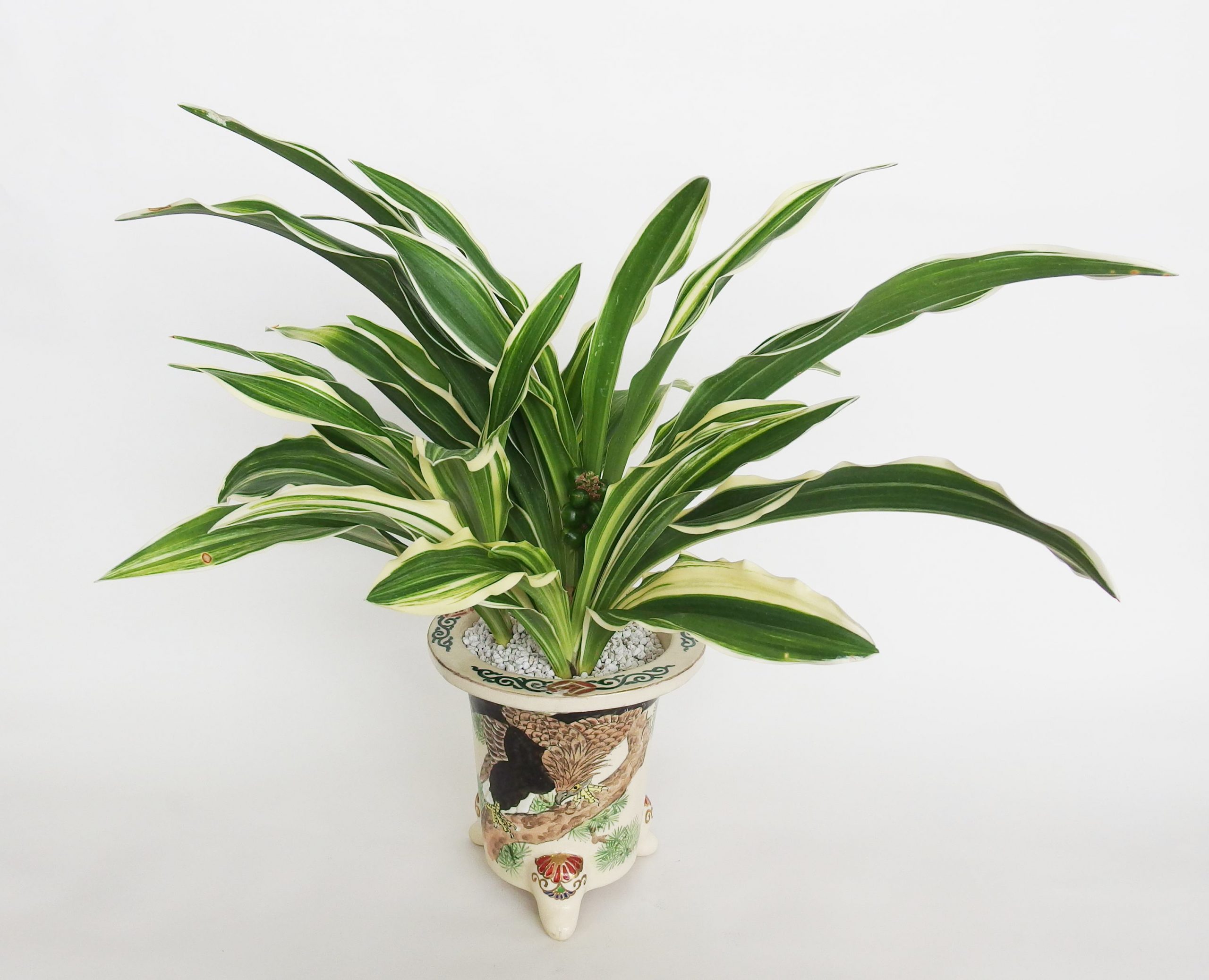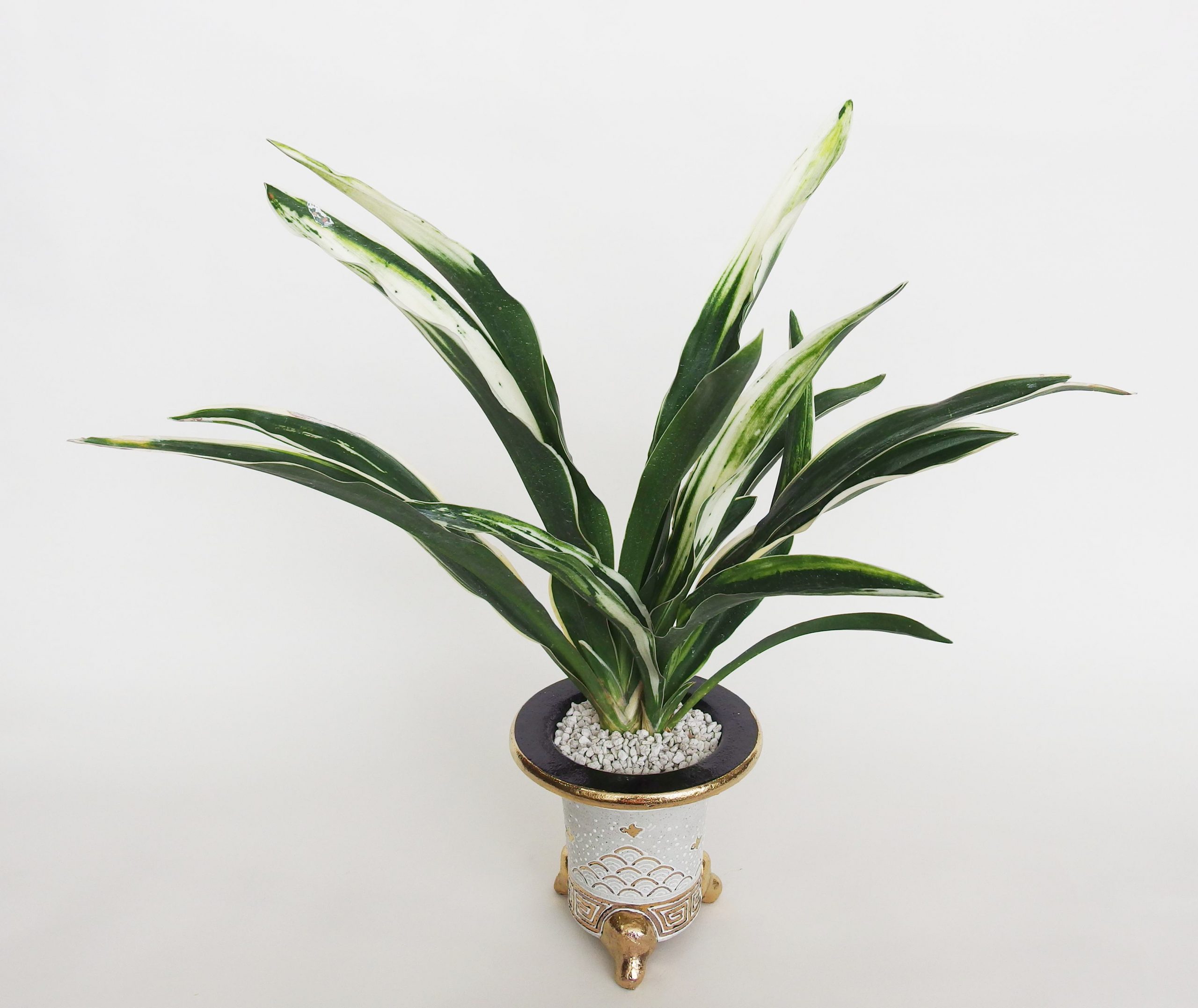 古くからの大人気種「太陽殿」に大きな白虎が入る勇壮なおもと。