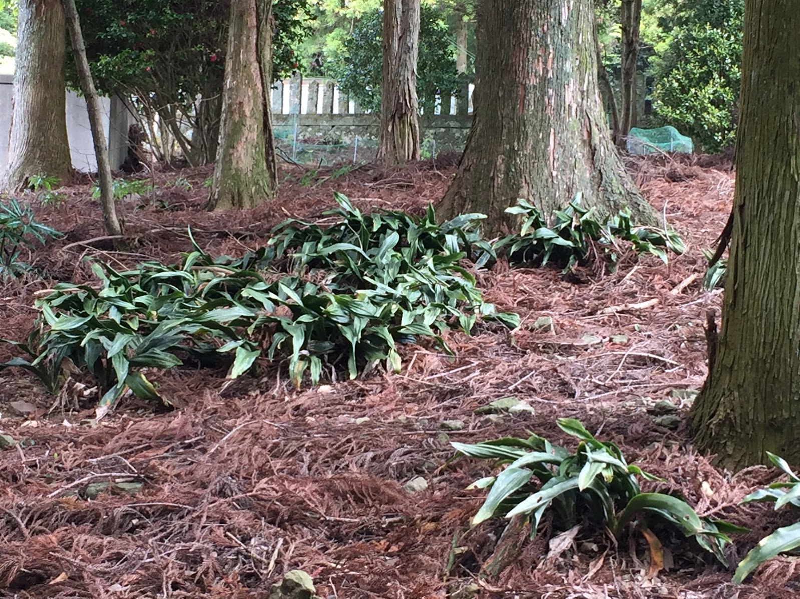畑の土では肥料の効きもよく、万年青は大きく、立派に育ちます。葉の伸び、子の上がり方もよいでしょう。