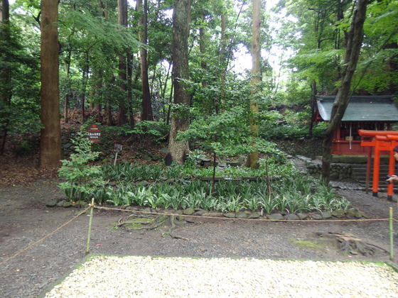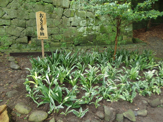 下から昇ってくると右手にお祓い所があります。この位置から左手におもとが植えてあります。