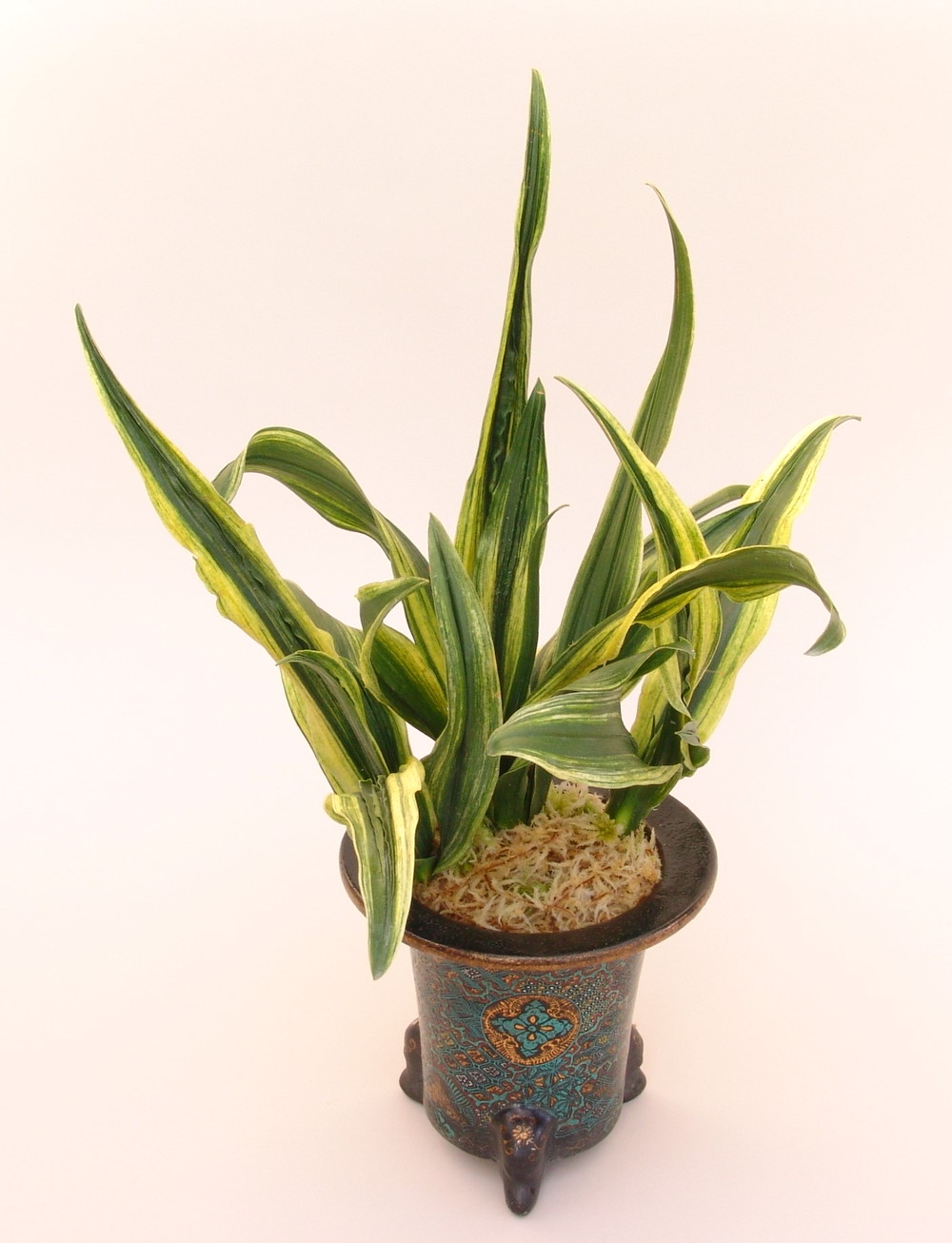 濃緑色の樋葉で白黄色の深い覆輪をかけます。株立ちになりやすく、根は細い。