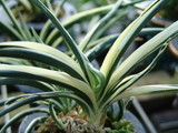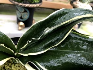 万年青の芸の中に、葉の柄(約17種、青葉、覆輪、縞、縞覆輪、砂子斑、胡麻斑、千代田斑/根岸斑、曙柄/中透け、図柄、虎斑、高隈斑、矢筈虎、白斑、鼈甲柄、駿河斑、紺覆輪、黄実など)を入れることもあります。そうすると全部で40種類ほどの芸があることになります。