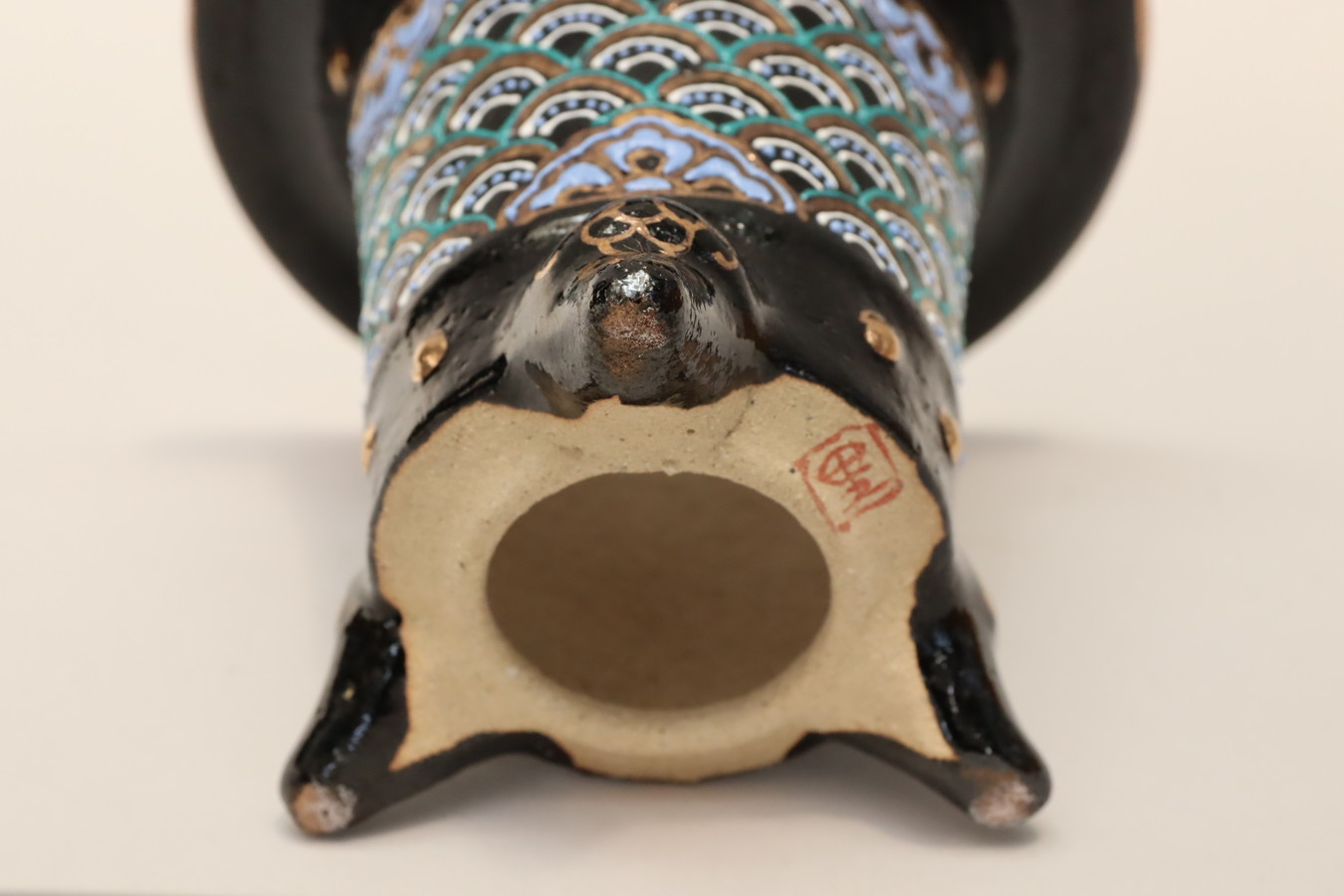 2572,太鼓胴 青海波金華飾り 万年青楽鉢 外径約9.9cm 【38000円→夏季特価】里サイン