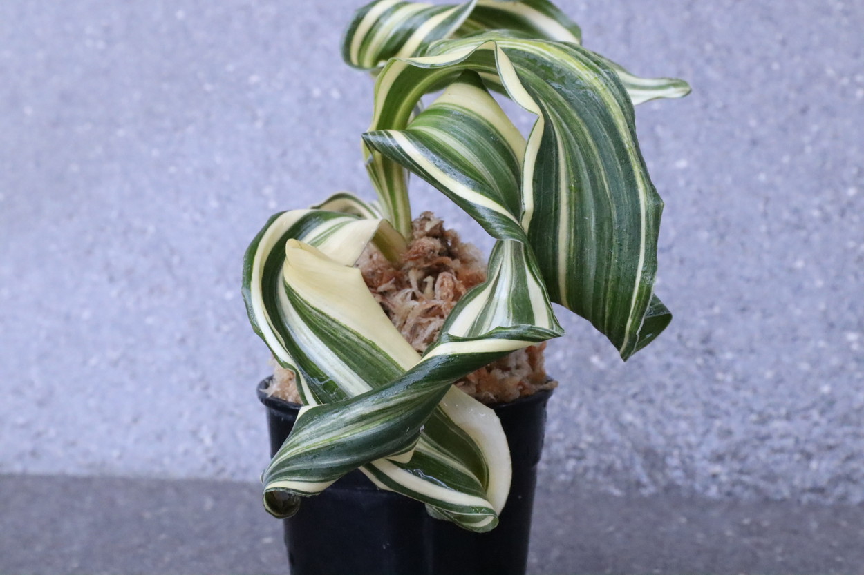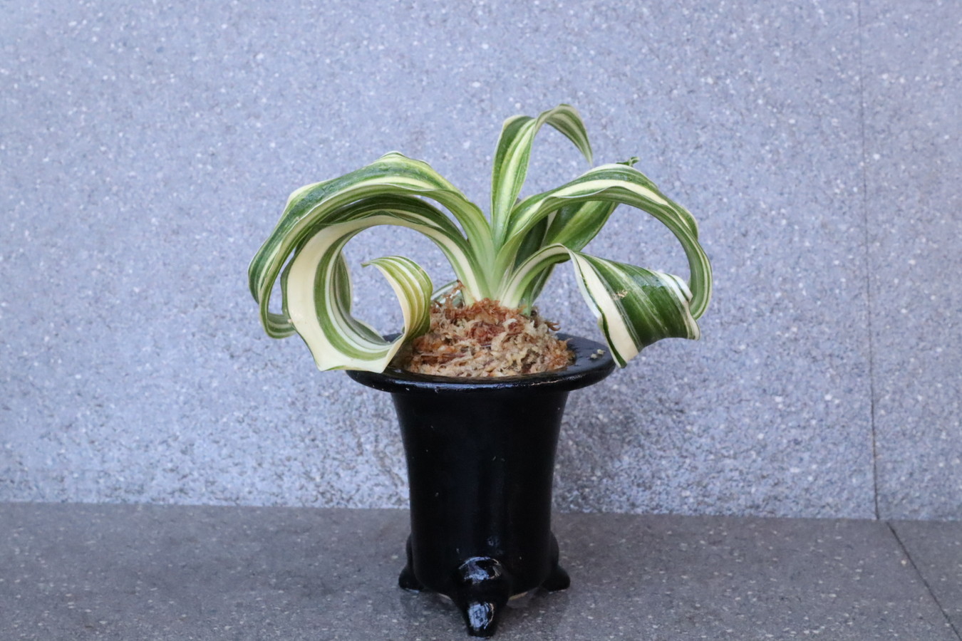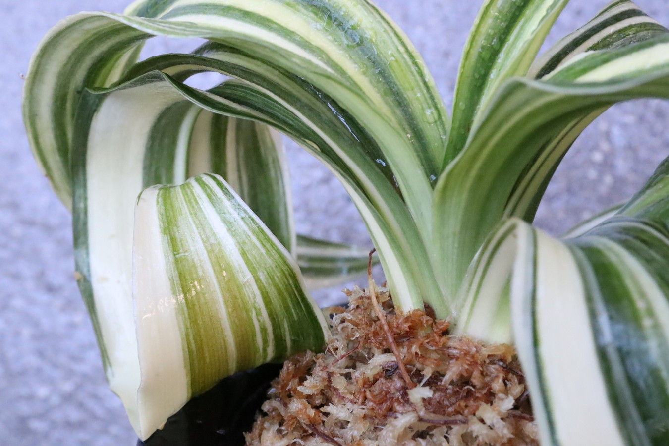 今では、EUなど海外に送ることが多い希少な獅子万年青。非常に珍しい葉が自然に巻く萬年青で、先人が江戸時代には見出して現代に大切に伝えています
