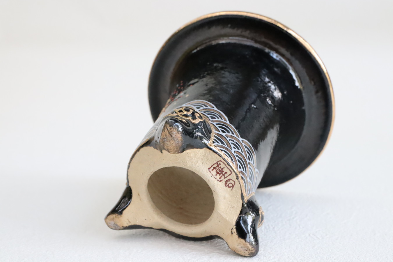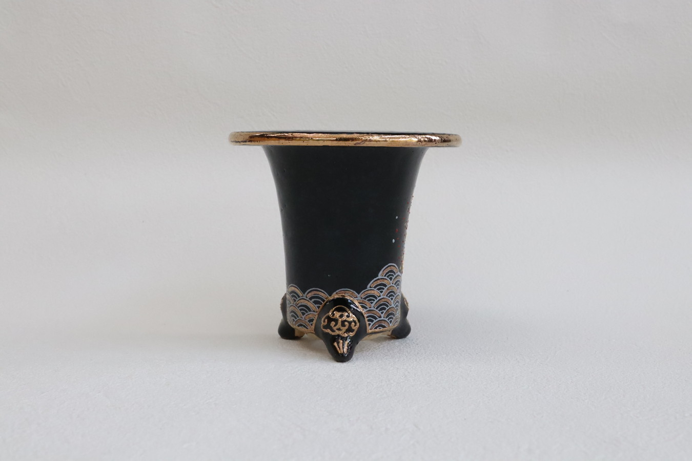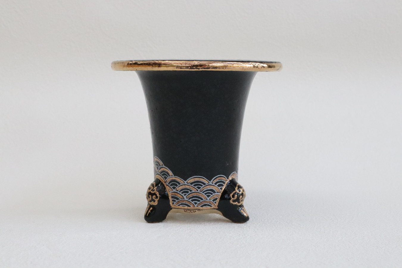 2524,加茂黒 金古代龍 青海波 外径約10.1cm 華サイン 賀茂黒