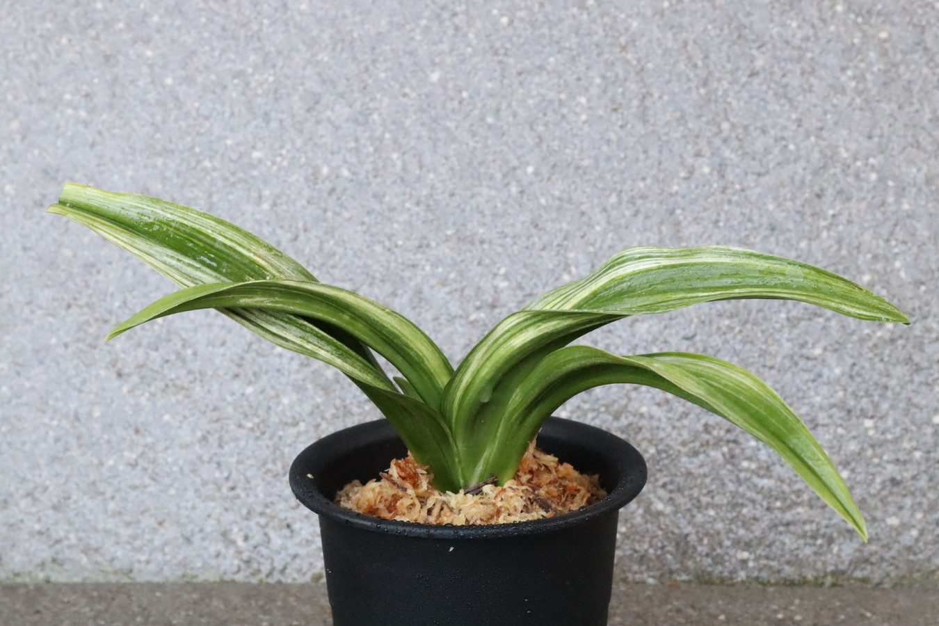 ふっくらした葉は肉厚で深い砂子覆輪を見せます。