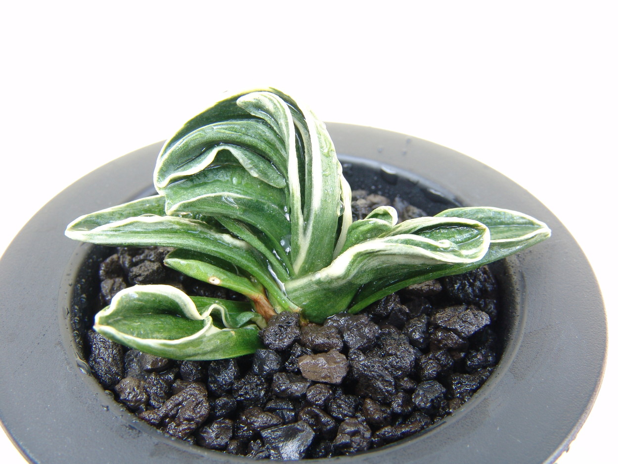 愛知県で作でされた実生を東京都の江田進氏が入手し、後に命名者の棚に納まり増殖された。小型種。至って肉厚の葉葉葉長が短く、太い首元に丸みのある葉に熨斗葉と二面竜を現す特有のやや硬い地質ながら、葉重ね良く、コンパクトな葉姿で人気が高い。まれに剣葉を出すこともある。性質は普通だが、体格が小さいためにさほど子上げは良くない。しかし芋吹きでは良く繁殖する。採光・施肥とも普通で育てやすい。地味な二面竜という葉芸の中でも特徴がある。