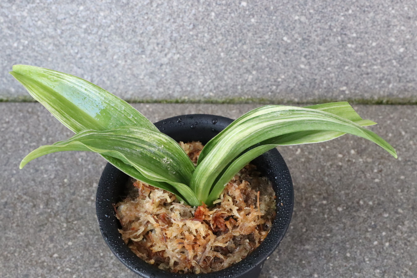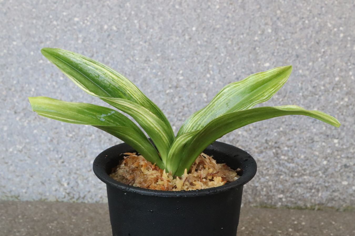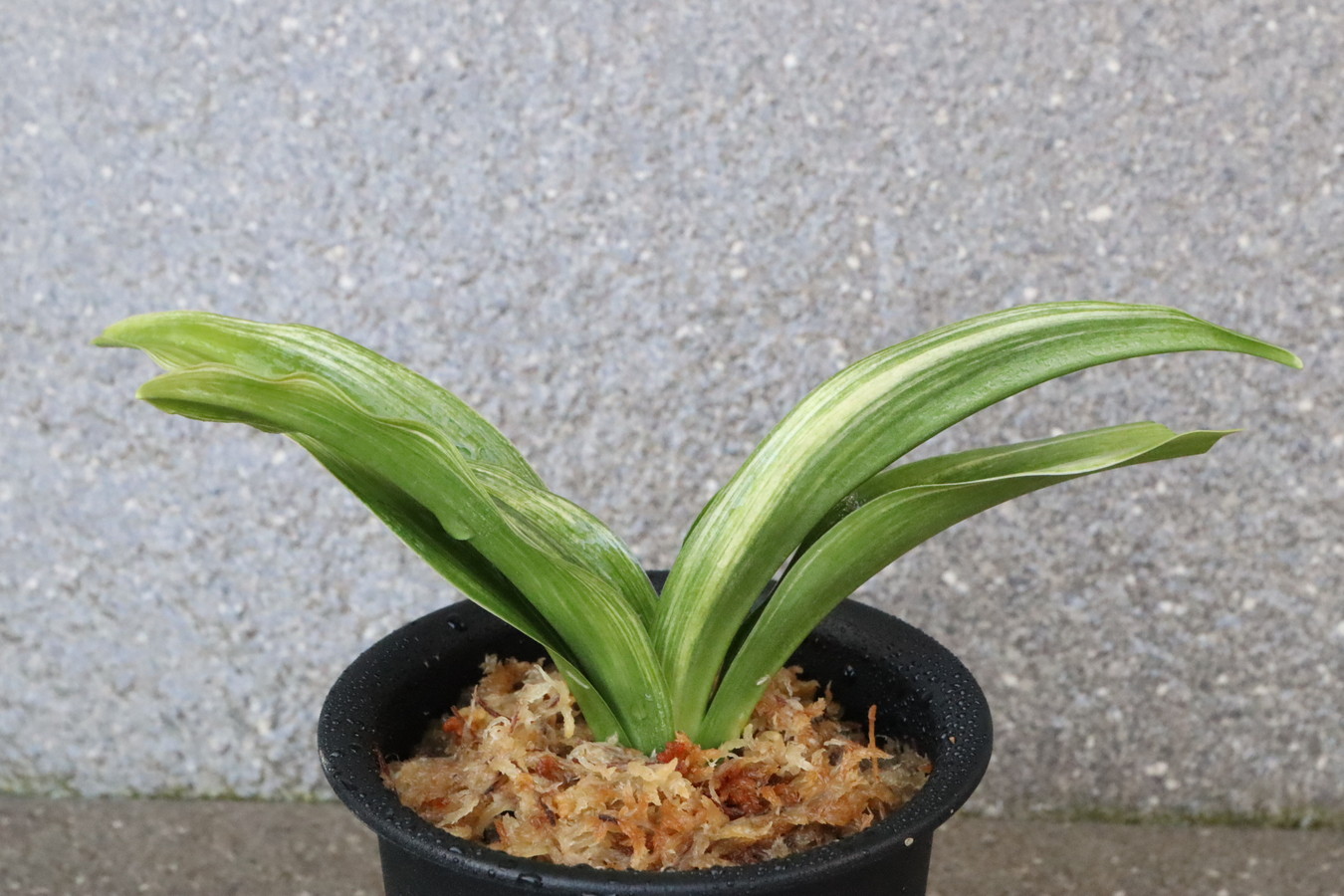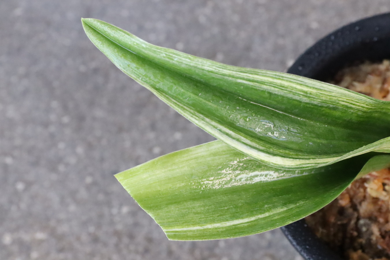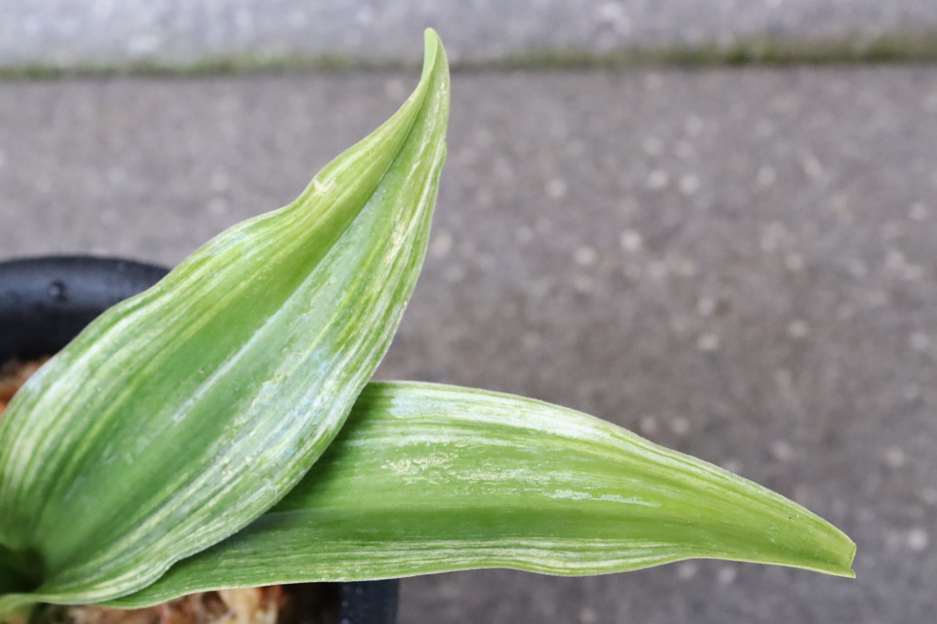 ふっくらした葉は肉厚で深い砂子覆輪を見せます。