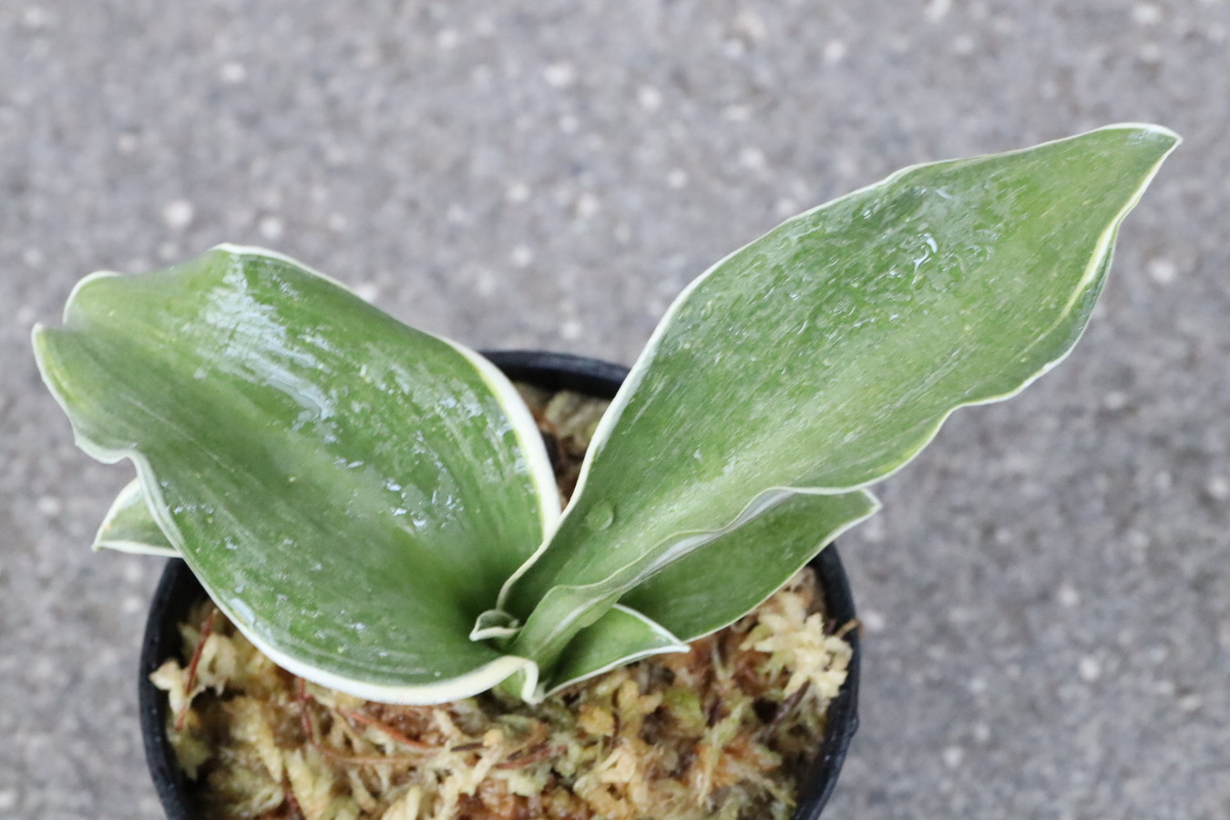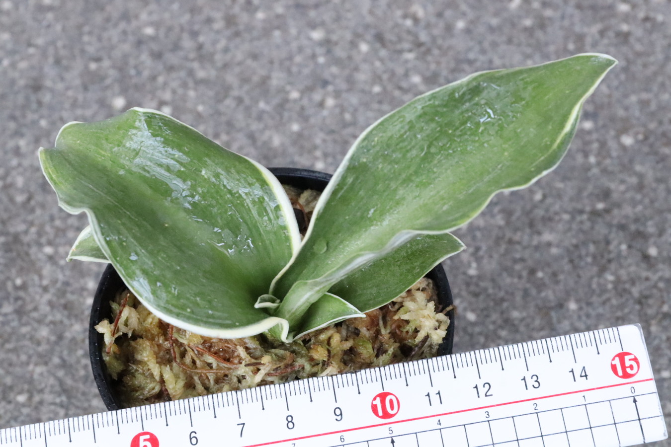 巾広の葉の覆輪は特に深くなり、特徴がはっきりしている品種