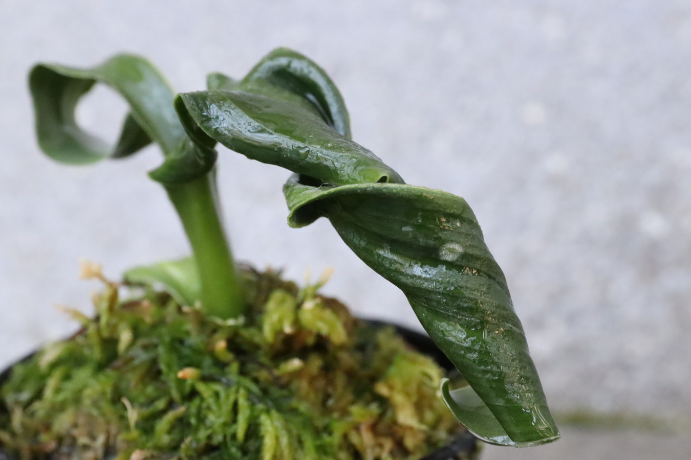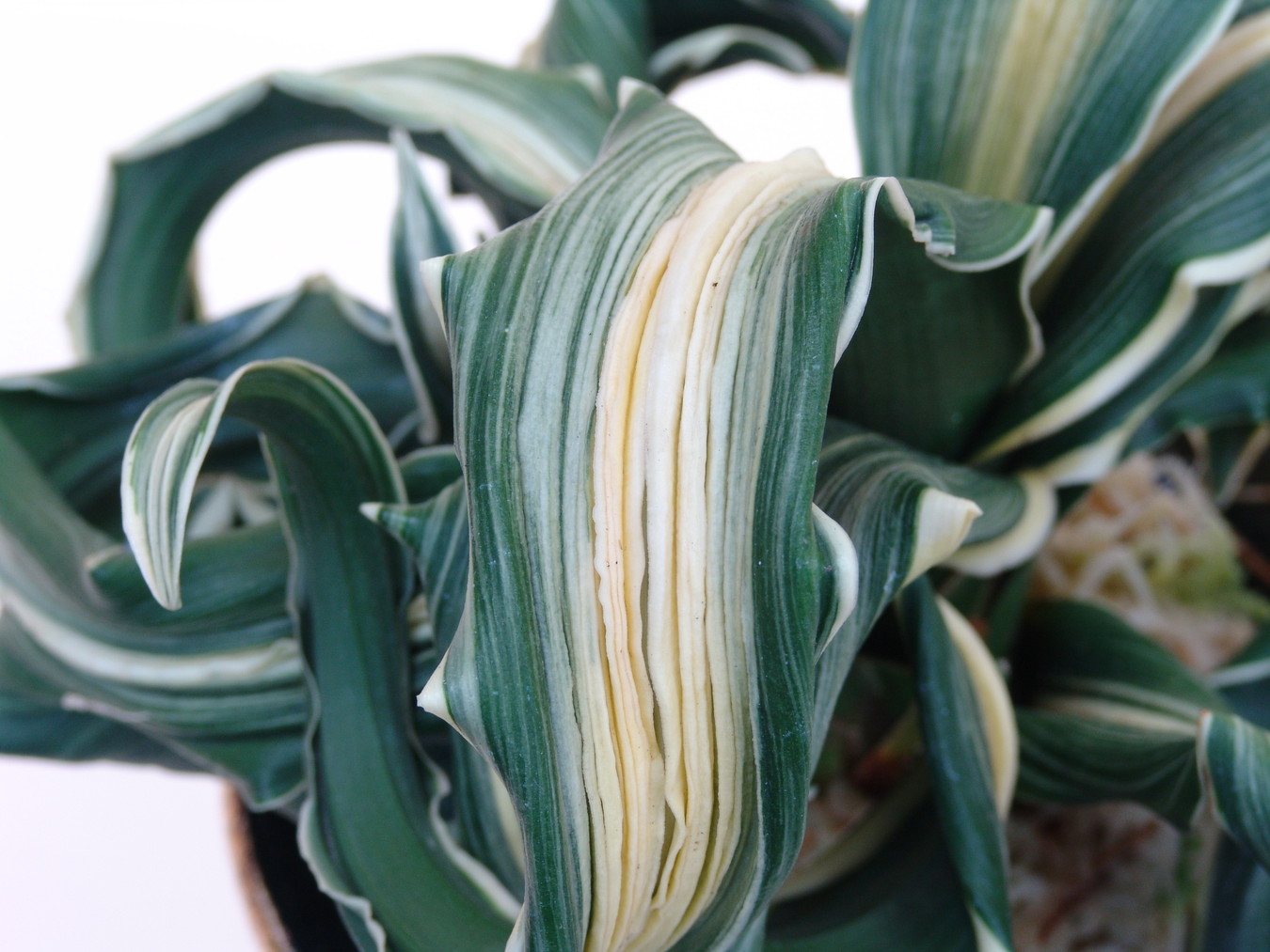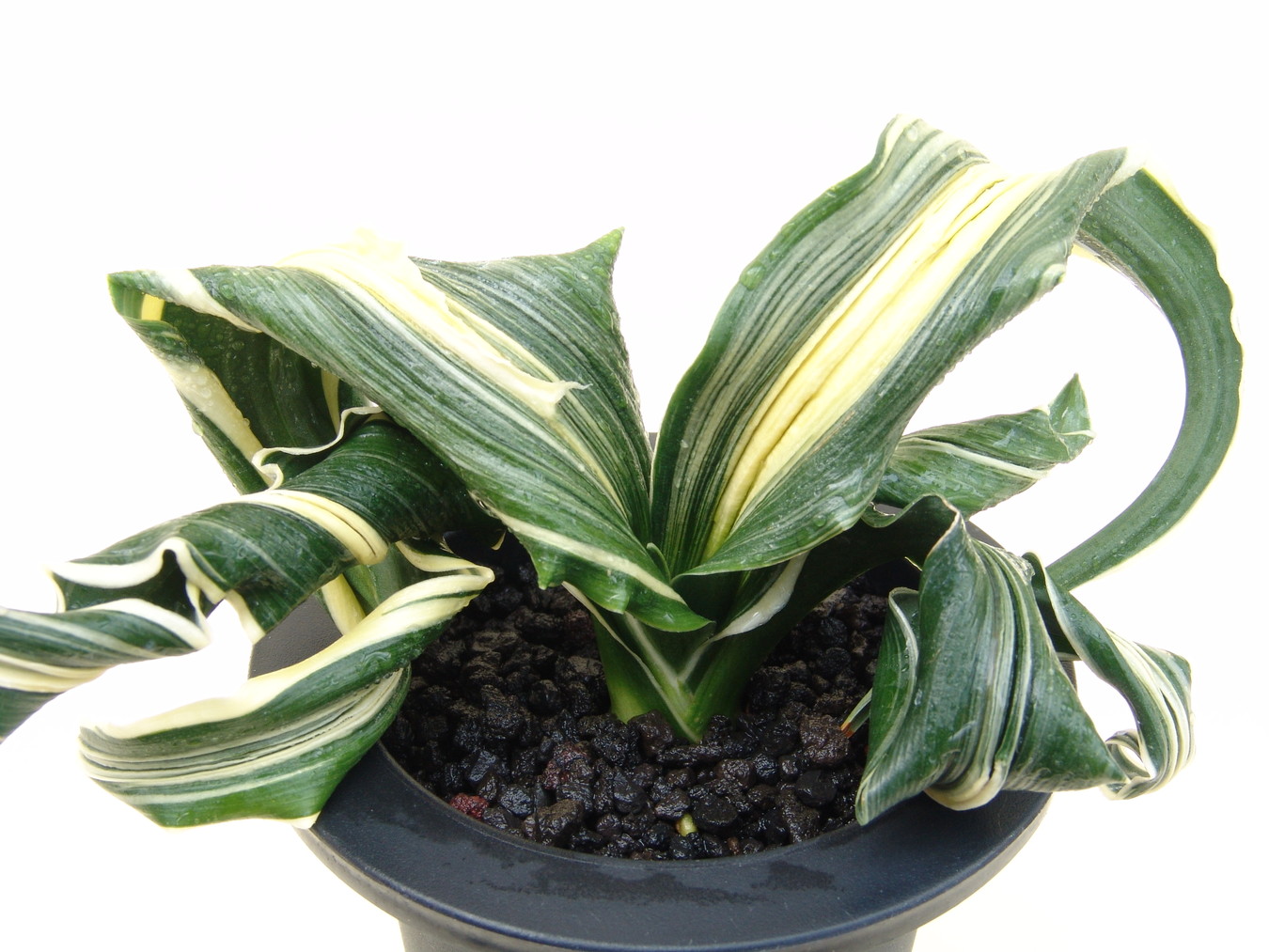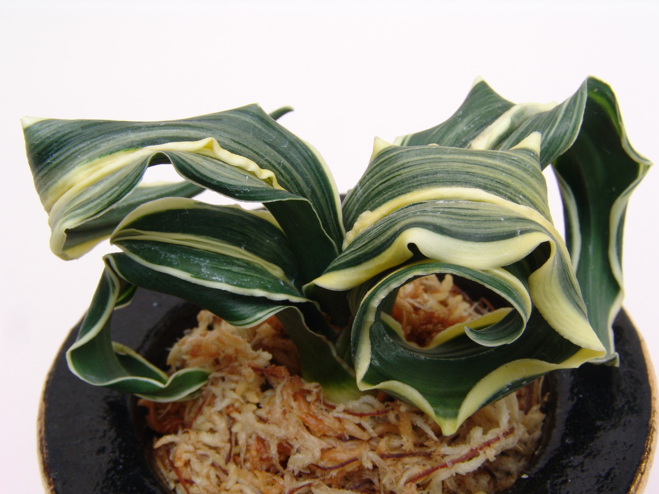 濃緑色の角巻き葉に低い総雅糸竜と二面甲竜をみせる美しい品種。