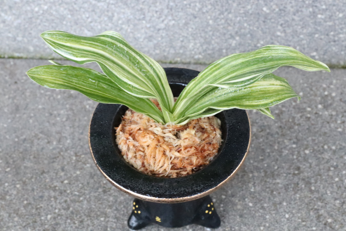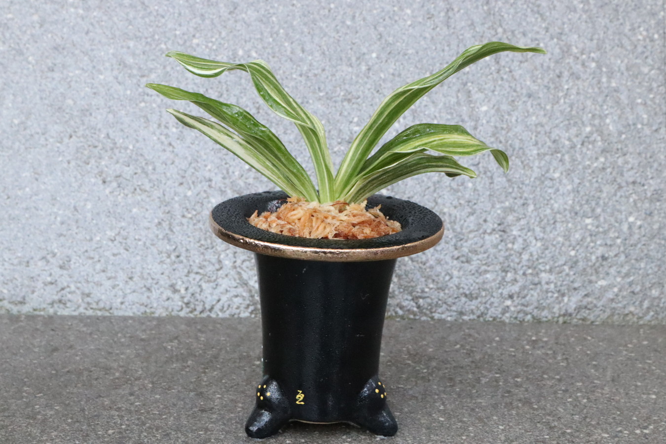 選び抜かれた万年青を一鉢ずつ丁寧に植え込みました。