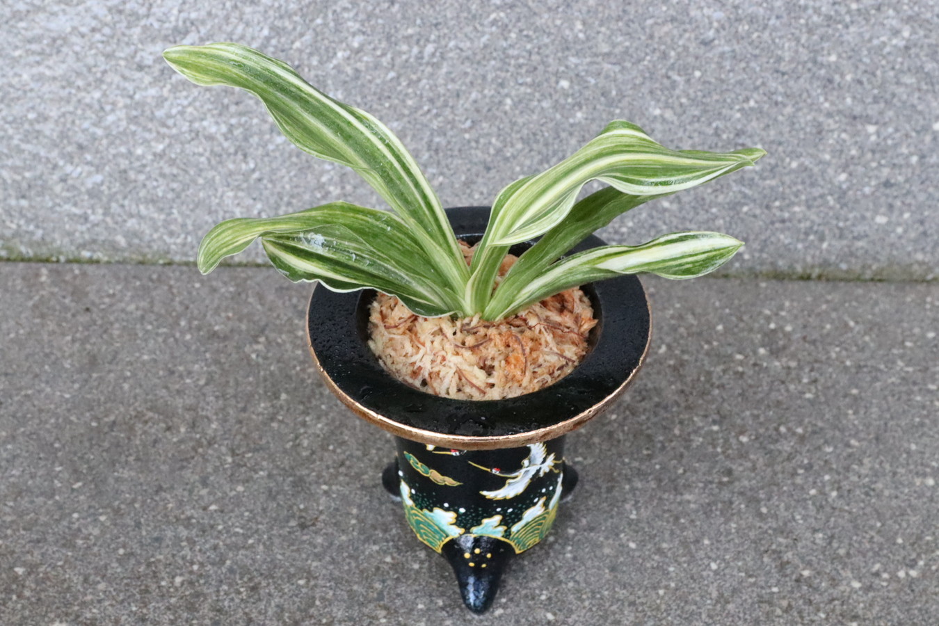 鶴と波の吉祥文様を映す、縁起の万年青