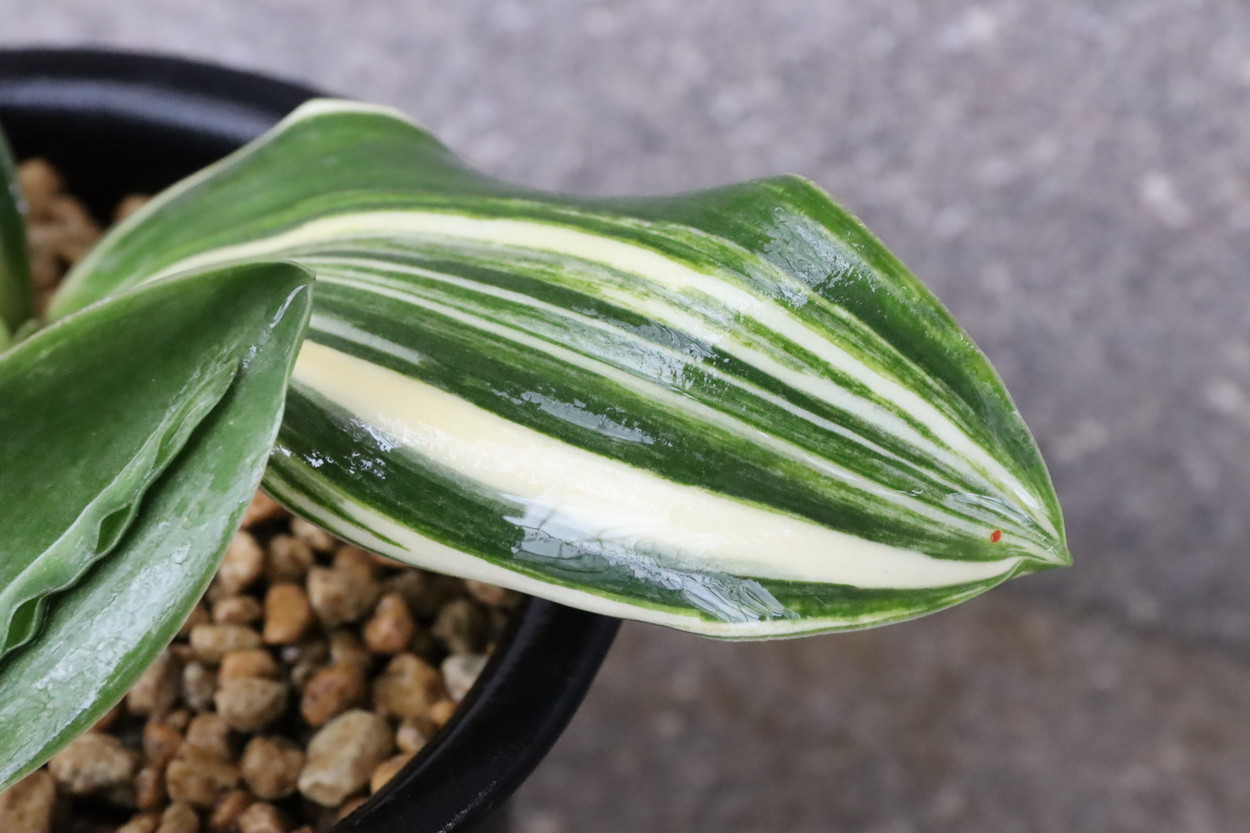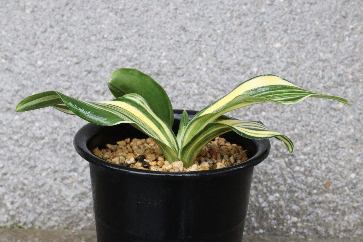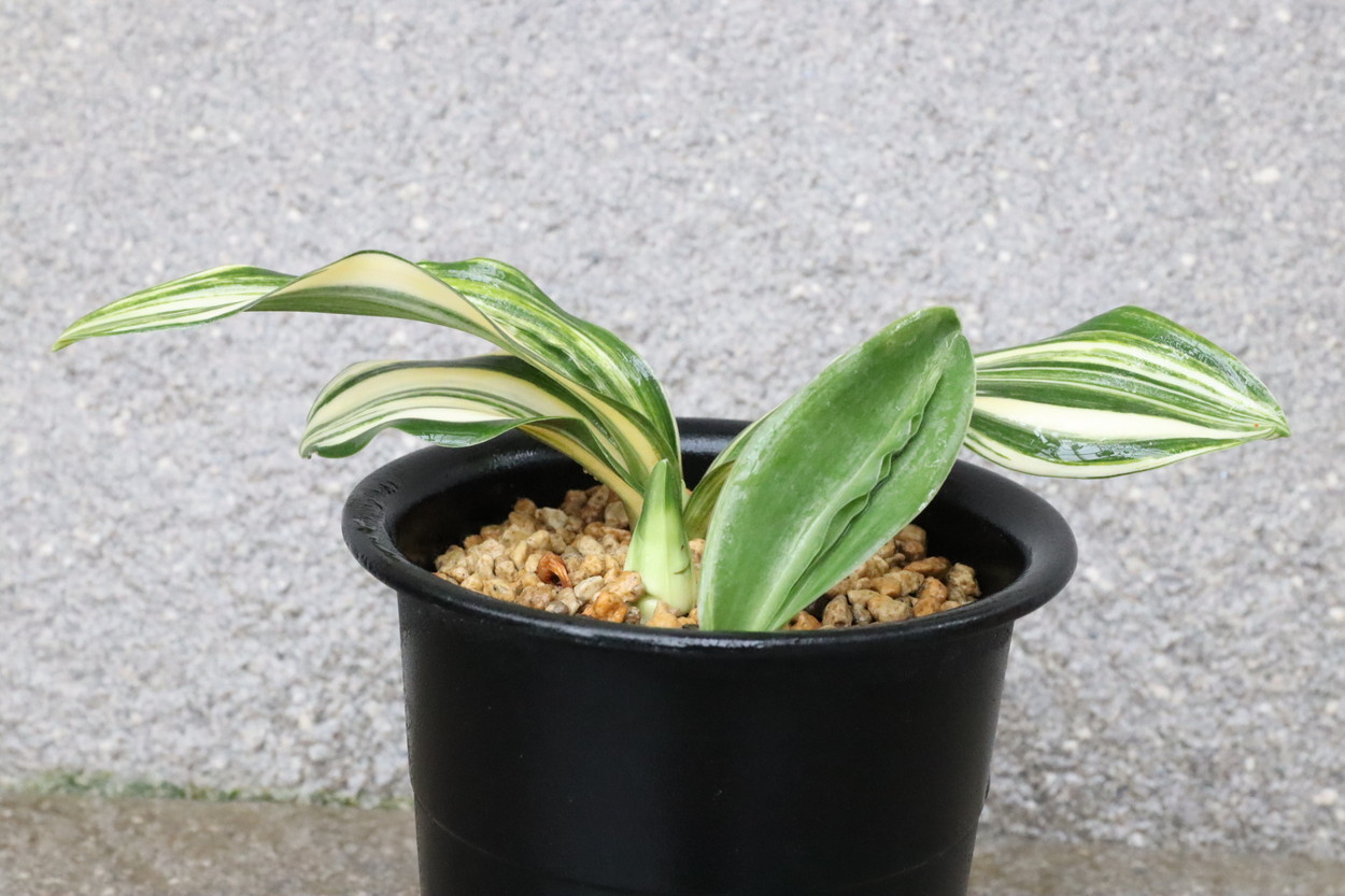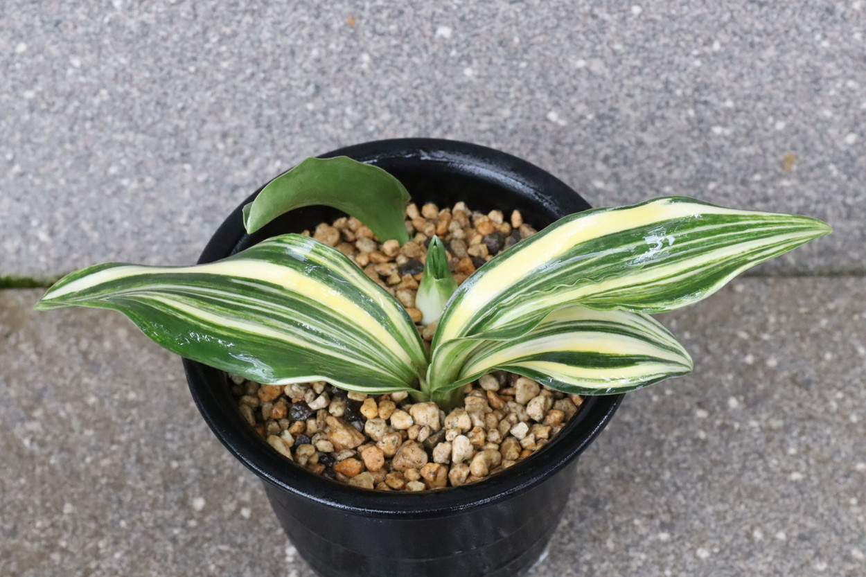太陽:今の万年青界四天王とも言われる人気品種であり、最高の実親で、岳陽を生み、羅紗の実績は多数。実親もたくさん産んでいる。親が錦麒麟と福寿龍という素晴らしい実親なので、錦麒麟型、福寿龍型のような実生もみせる