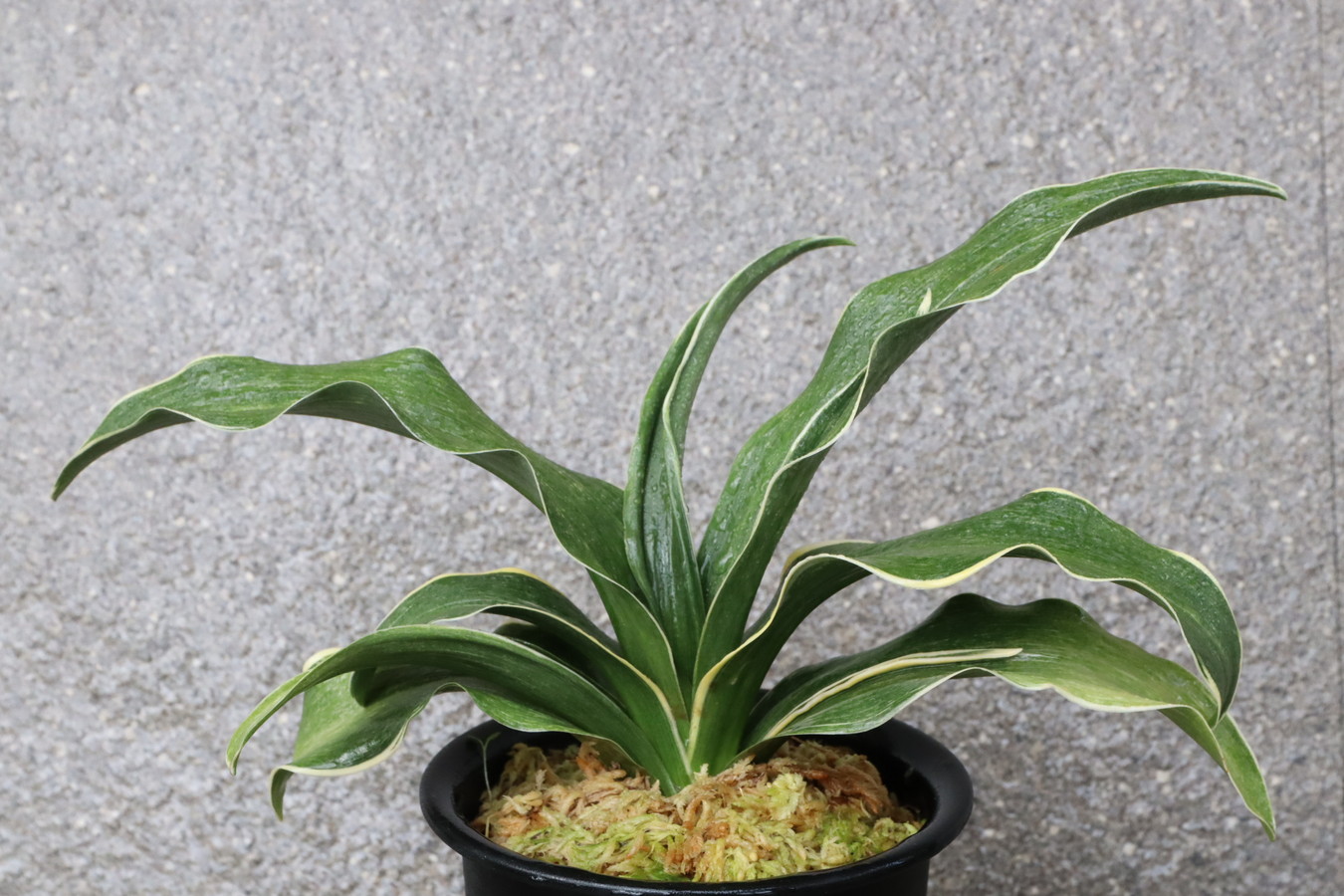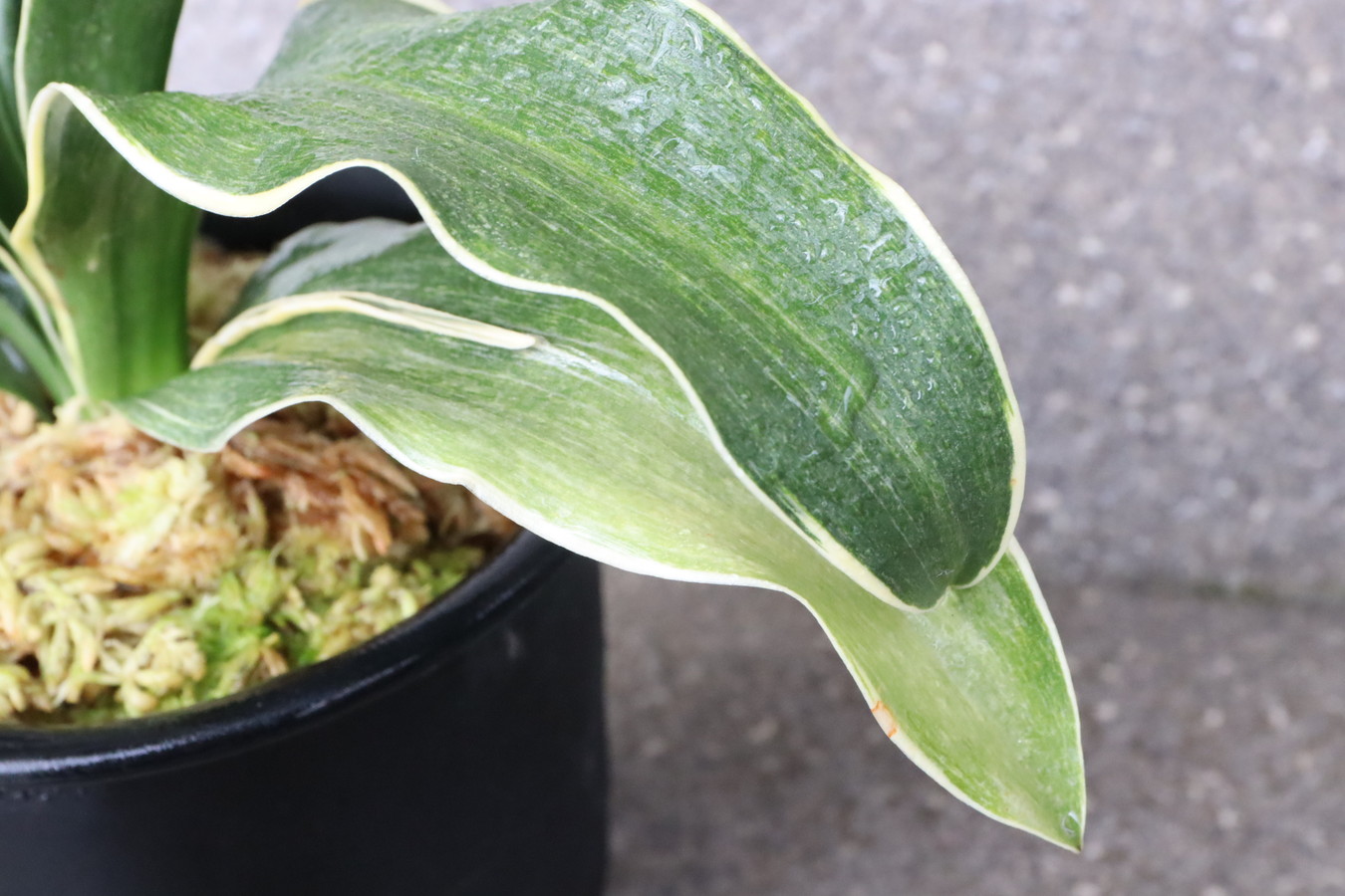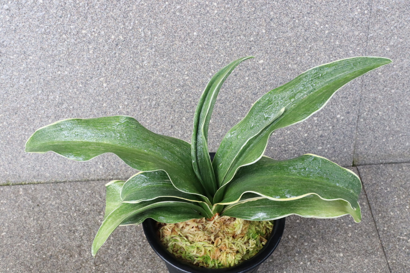 葉先は少し丸く一本竜を見せます、波打つ葉に胡麻斑を現す品種。性質は強健で繁殖も良い。胡麻斑の鮮明なものは「桑名性」という。