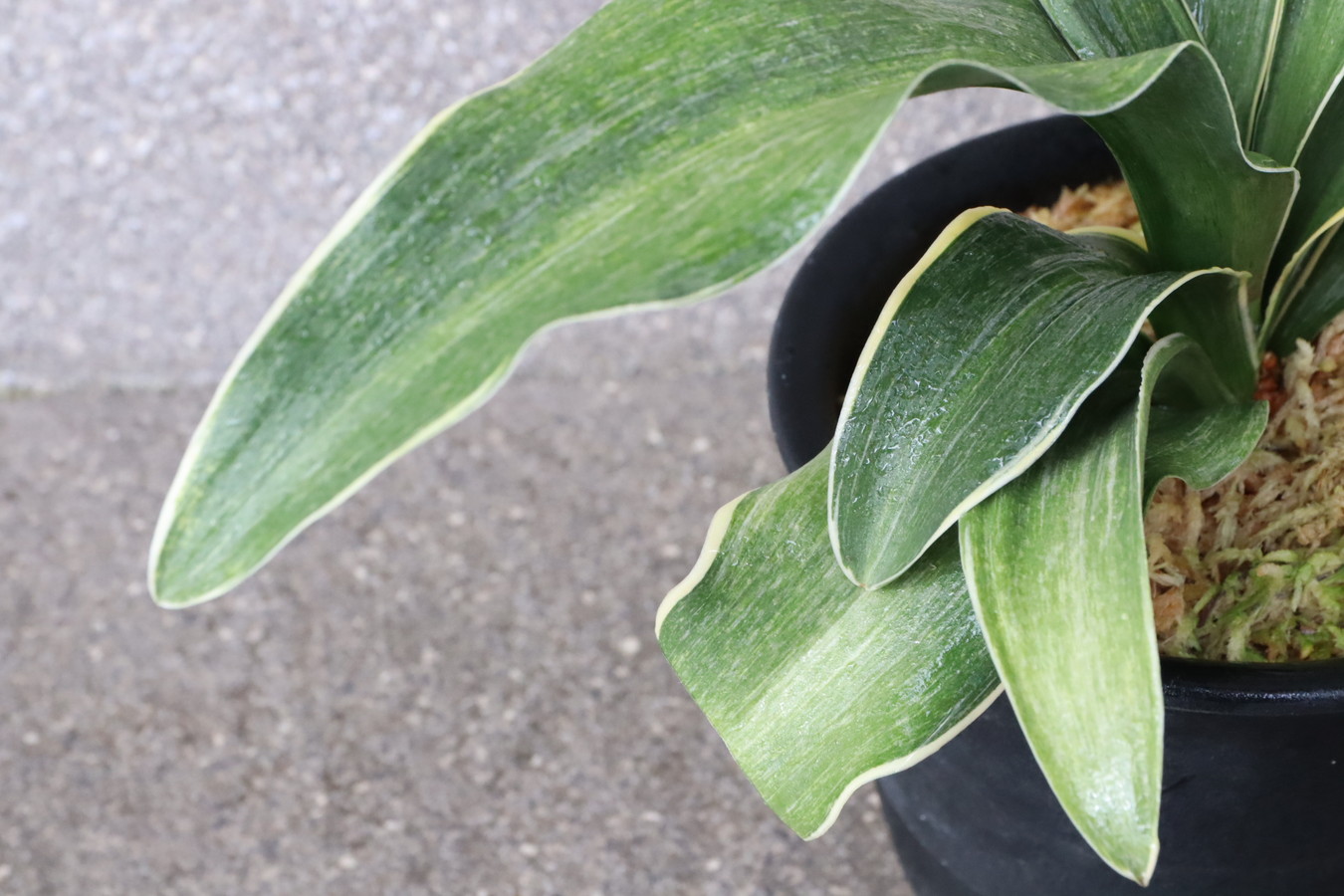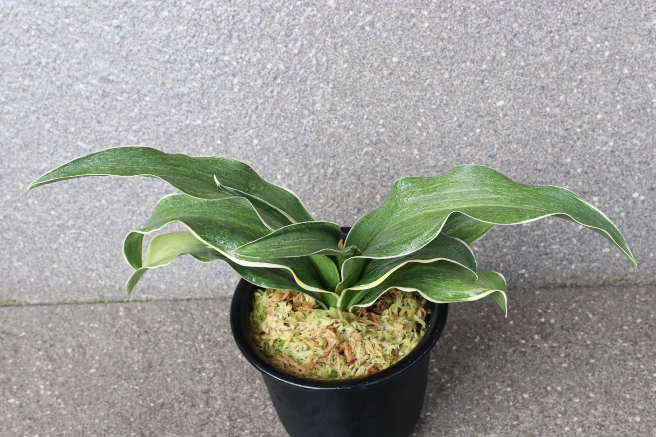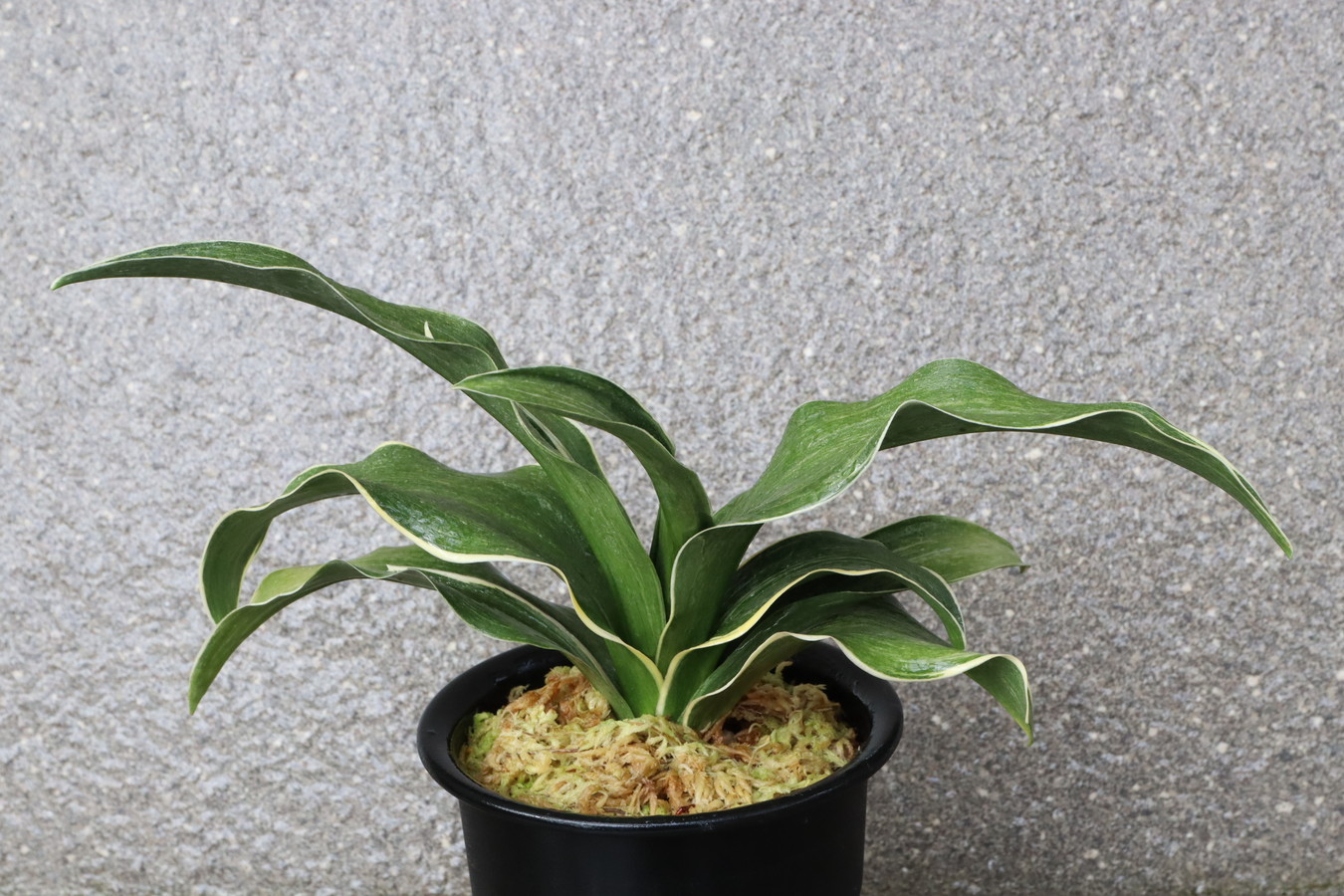 葉先は少し丸く一本竜を見せます、波打つ葉に胡麻斑を現す品種。性質は強健で繁殖も良い。胡麻斑の鮮明なものは「桑名性」という。
