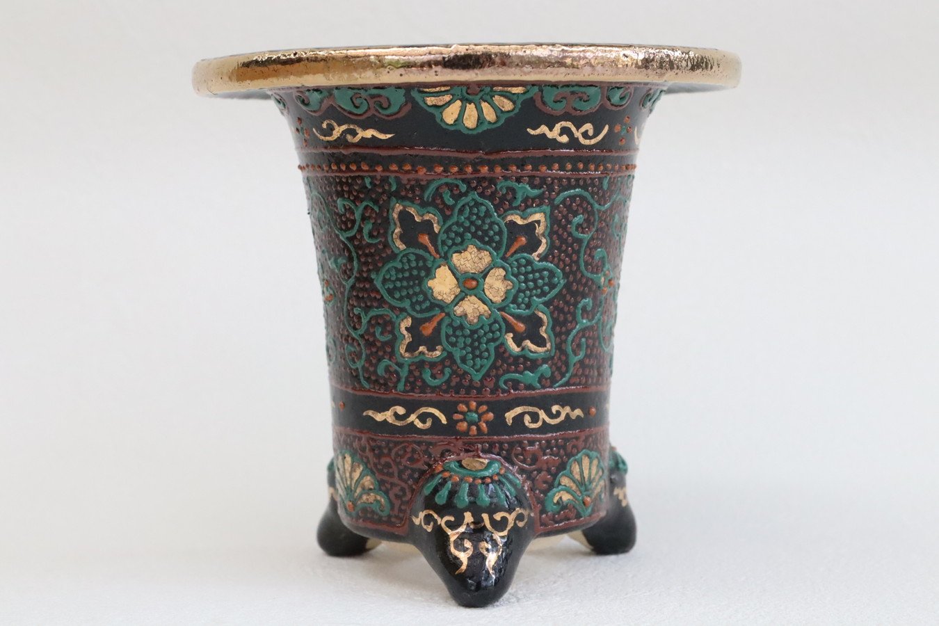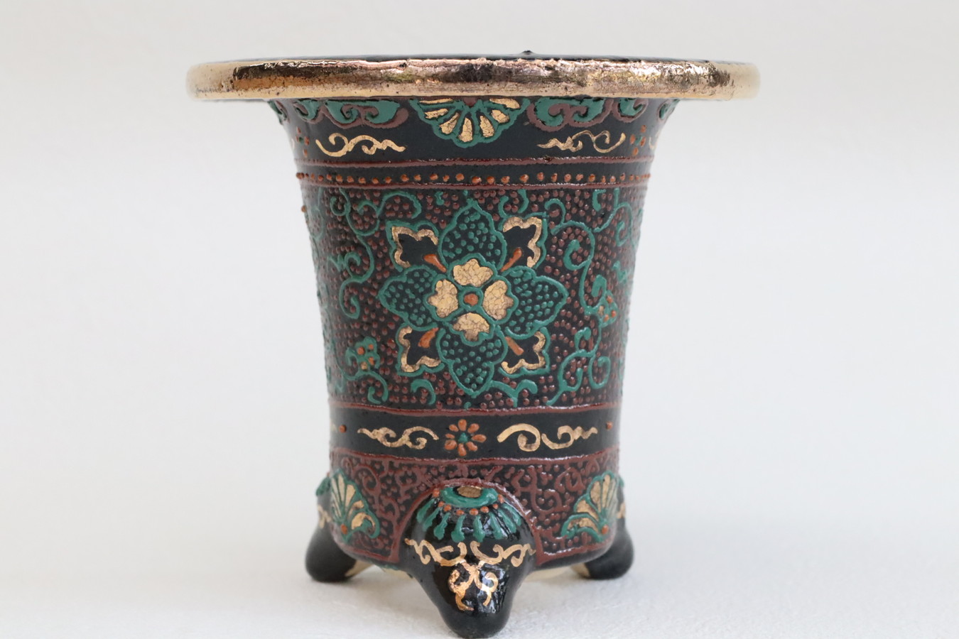 作家さんの脂ののった時期というのは意外と短いとも言われている。今の作品が手に入るのは本当に貴重で、希少な機会。手作業、手作りの時間のかかる作業の繰り返しなので、1年にできる鉢数は決まっている。加茂黒や、手の込んだ作品になるとまた数は絞られてくる。本当に貴重な鉢。(これは加茂黒ではないです)