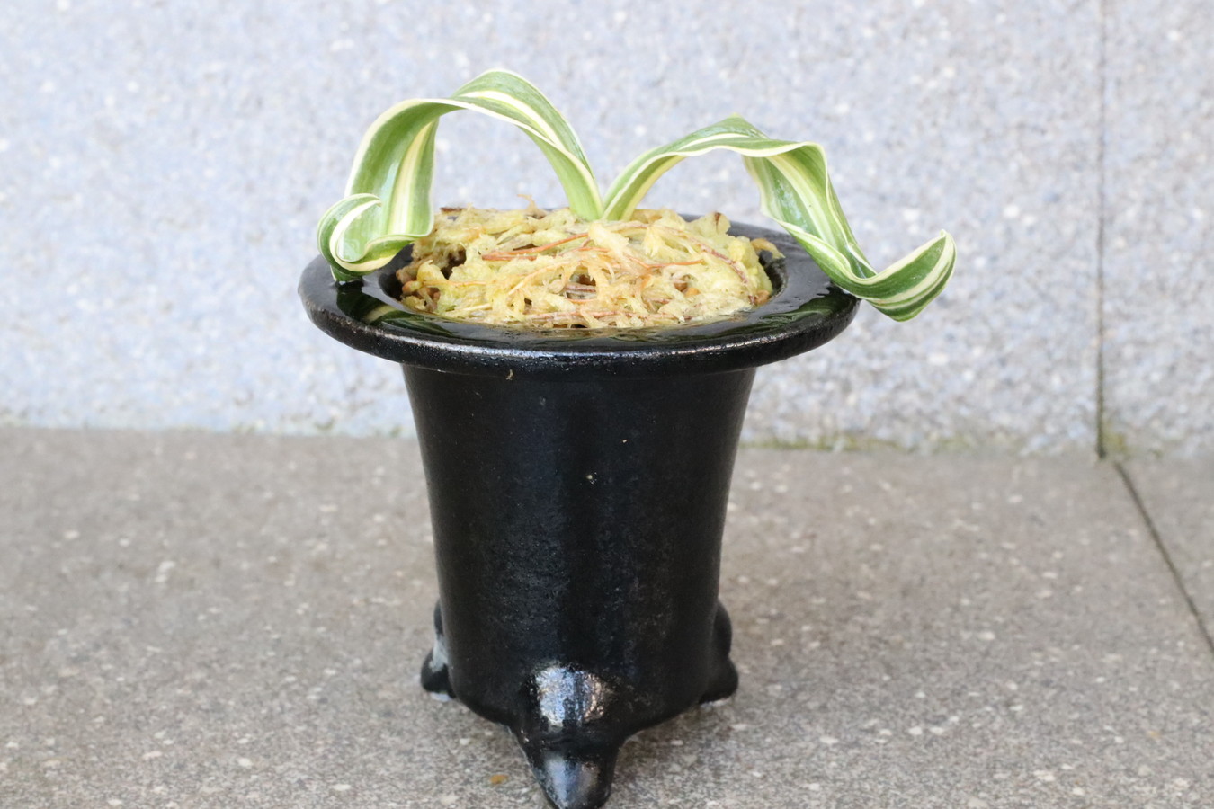 今では、EUなど海外に送ることが多い希少な獅子万年青。非常に珍しい葉が自然に巻く萬年青で、先人が江戸時代には見出して現代に大切に伝えています