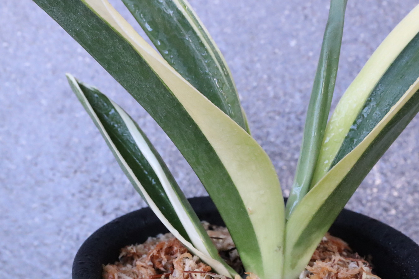 大覆輪と一目でわかる受け葉の葉姿が特徴