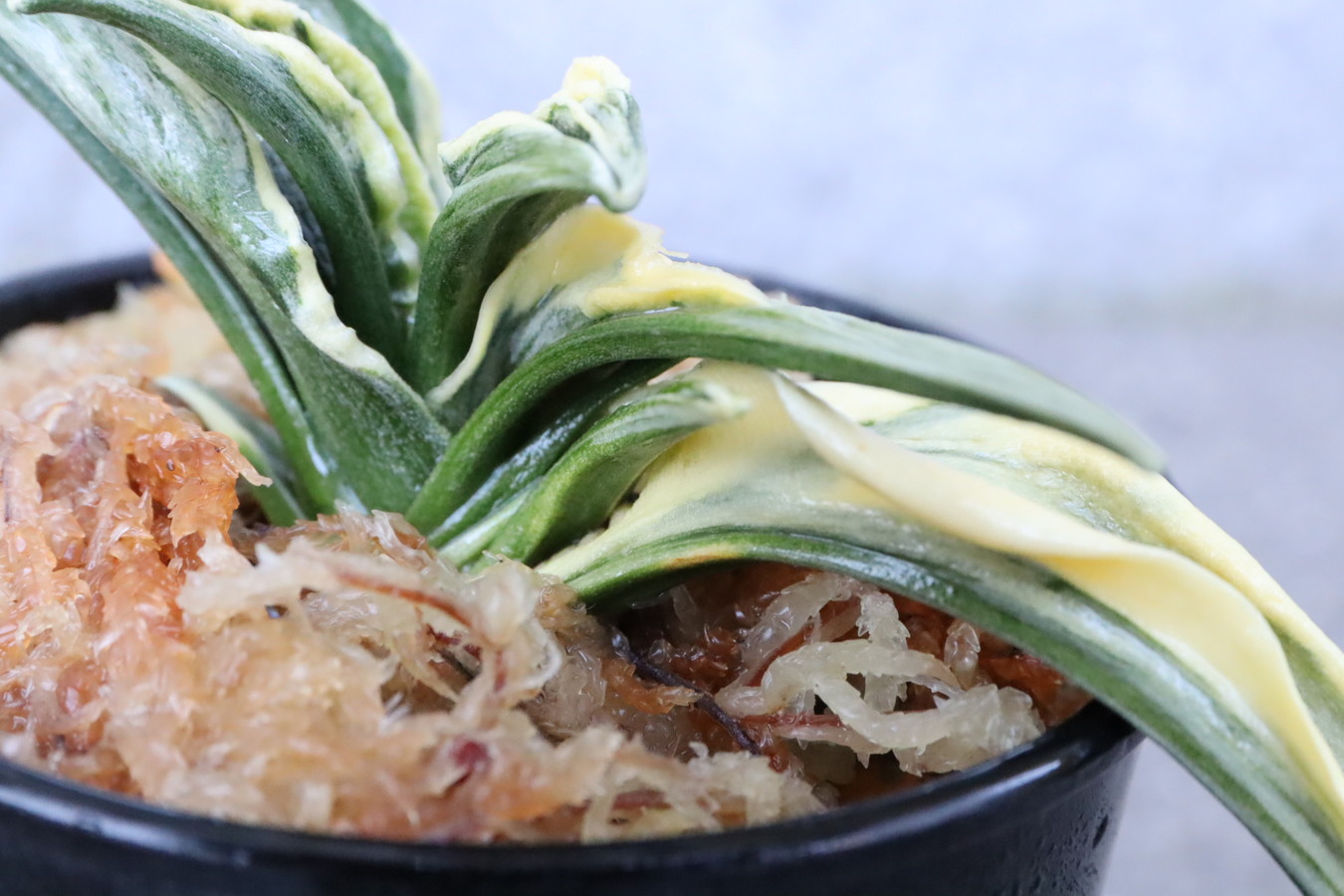 濃緑色の肉厚葉に雅糸竜、熨斗葉を現します。