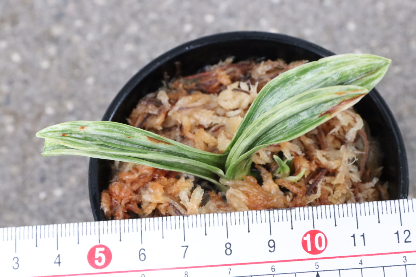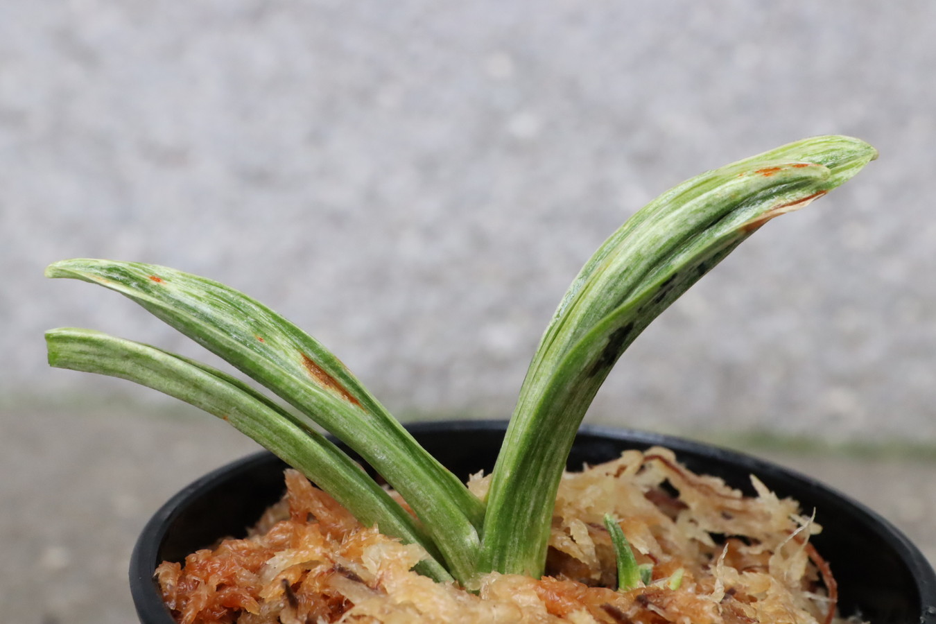 葉の全面を雅糸竜が覆うこともあり、芸非常に強い。日の具合がちょうどよいと、葉の半分が千代田斑に、半分が雅糸龍になり、時おり、玉龍を見せる。葉先はとがる。
