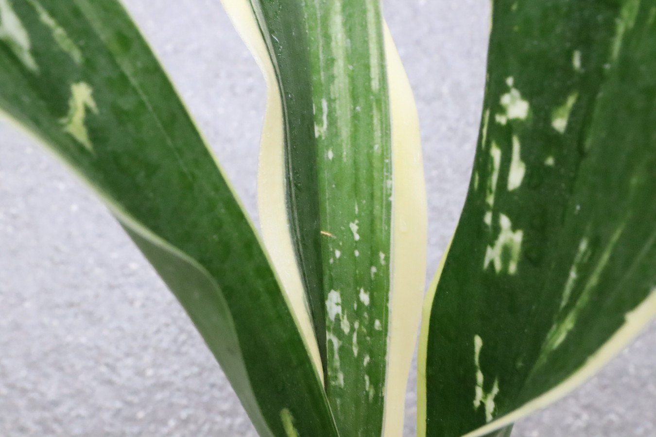 萬年青界の最高の功労者といってもよい方が大切にした品。長寿系で独特な姿をしていること、図がはっきりとしていて、覆輪深く見分けやすいこと、非常に素晴らしい品。