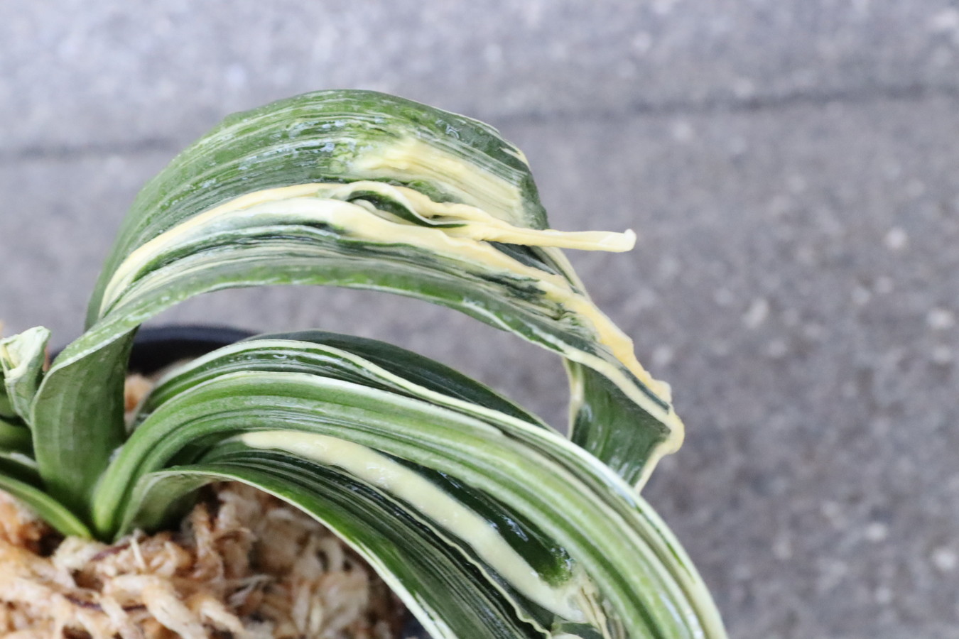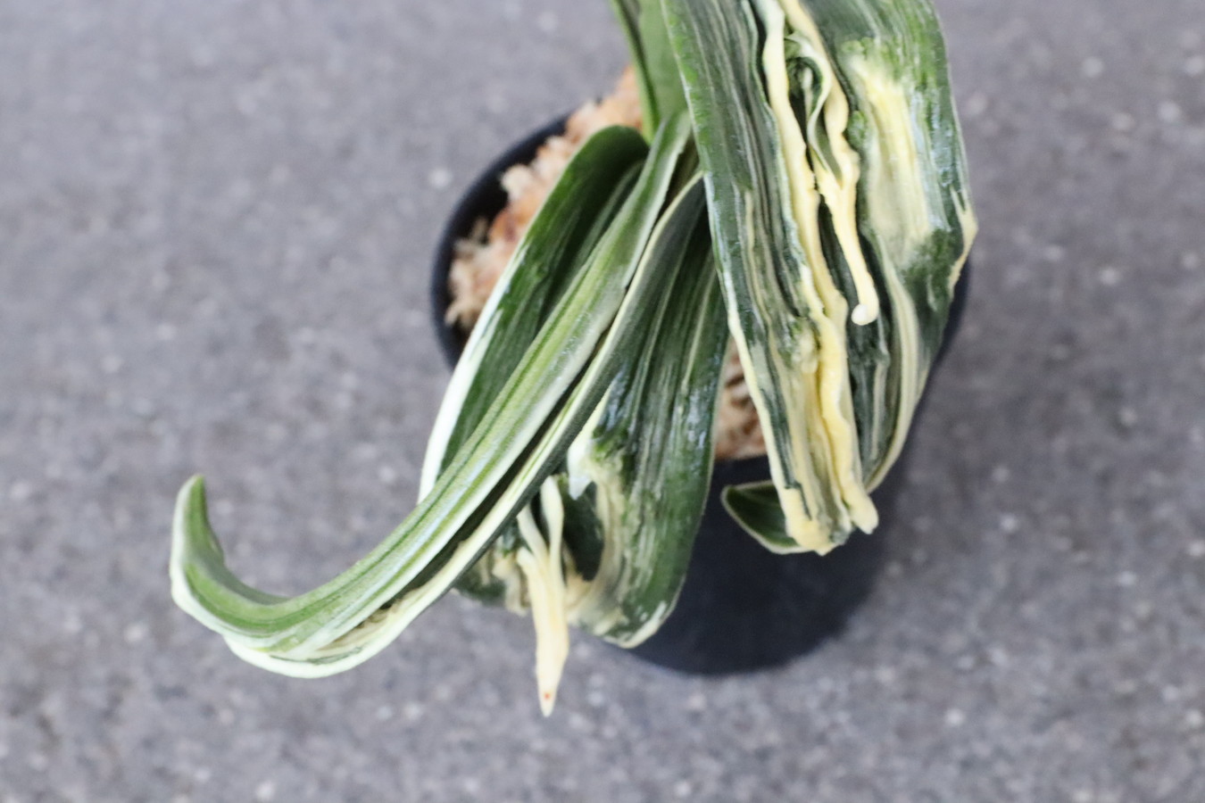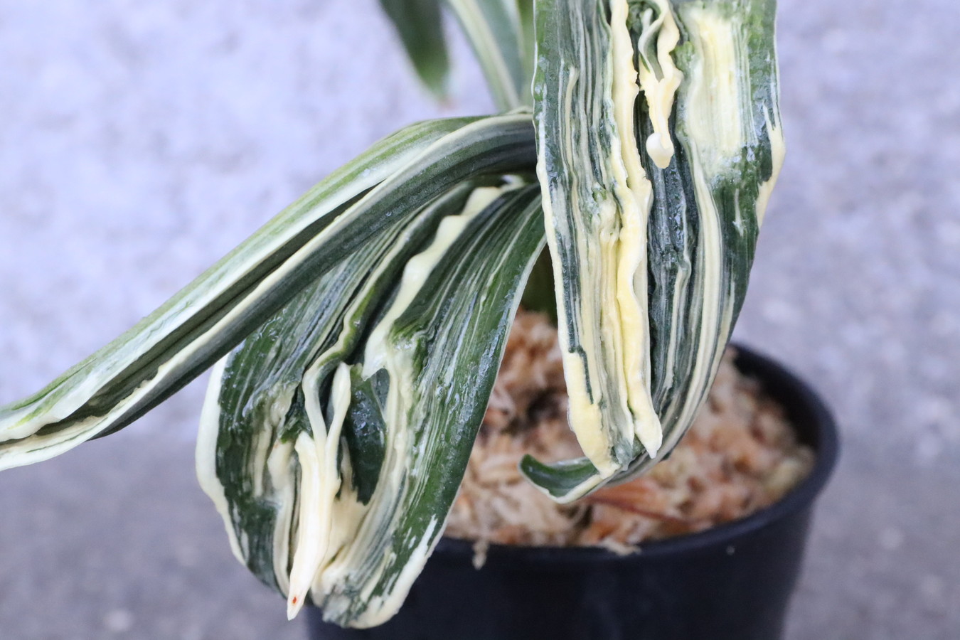 6250,玉姫(たまひめ)縞覆輪 獅子 現場覆輪?極薄縞? 【葉色薄い特価!はきずはきれ多い大特価!】※春から秋は生長期なので姿は変わっていきます
