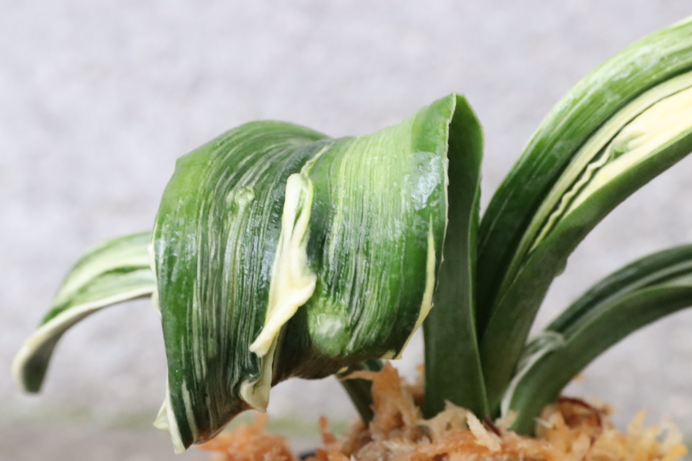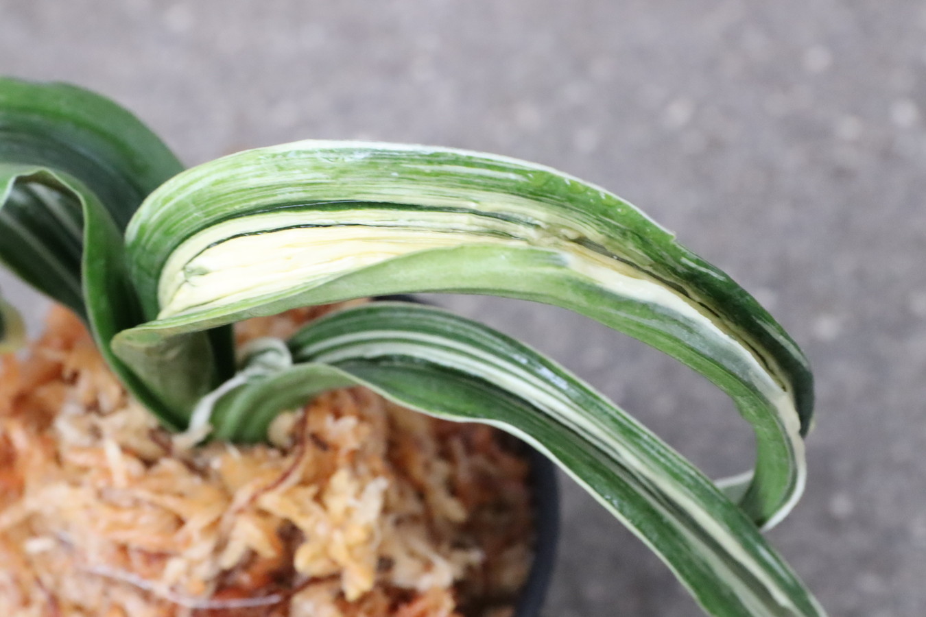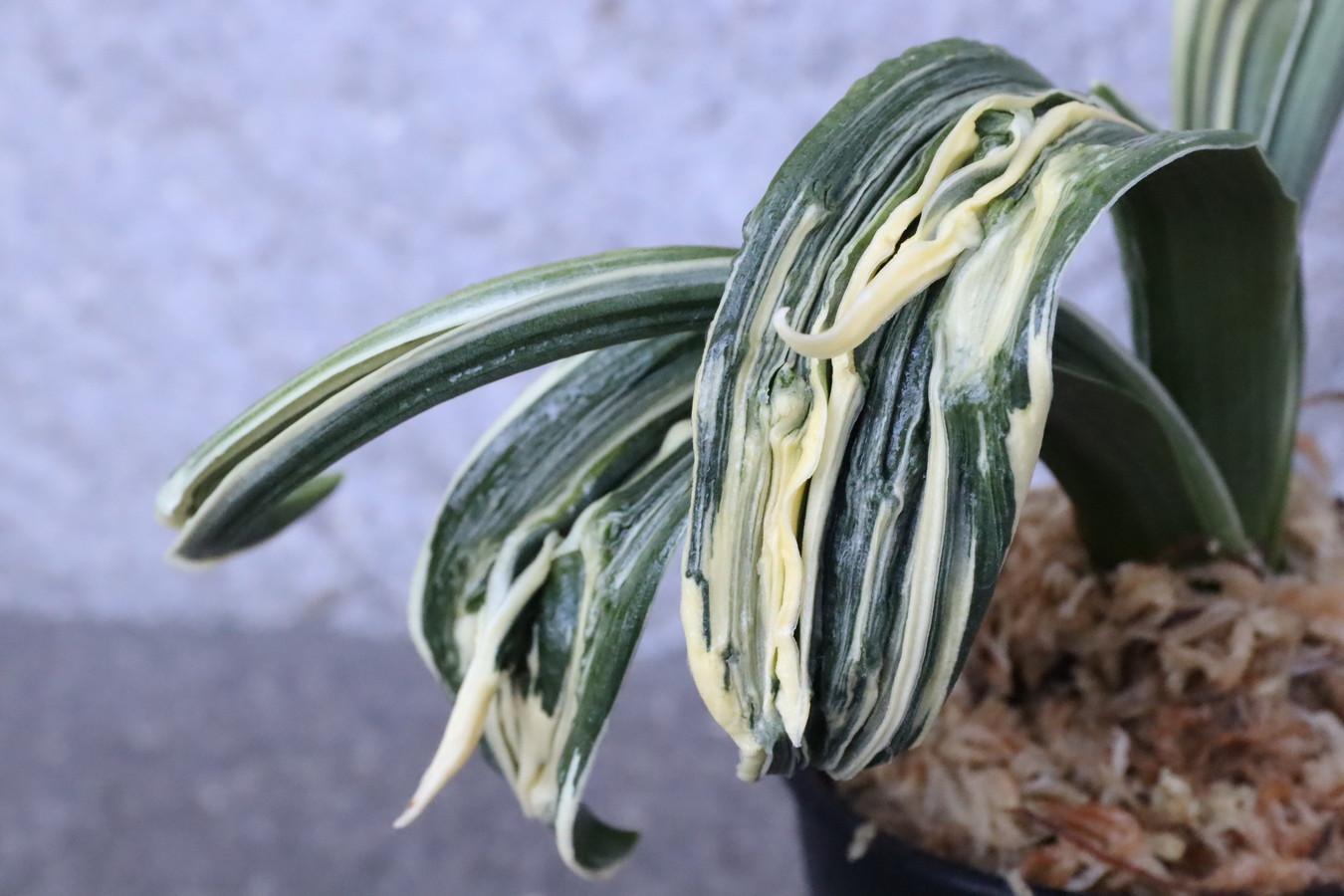 6250,玉姫(たまひめ)縞覆輪 獅子 現場覆輪?極薄縞? 【葉色薄い特価!はきずはきれ多い大特価!】※春から秋は生長期なので姿は変わっていきます