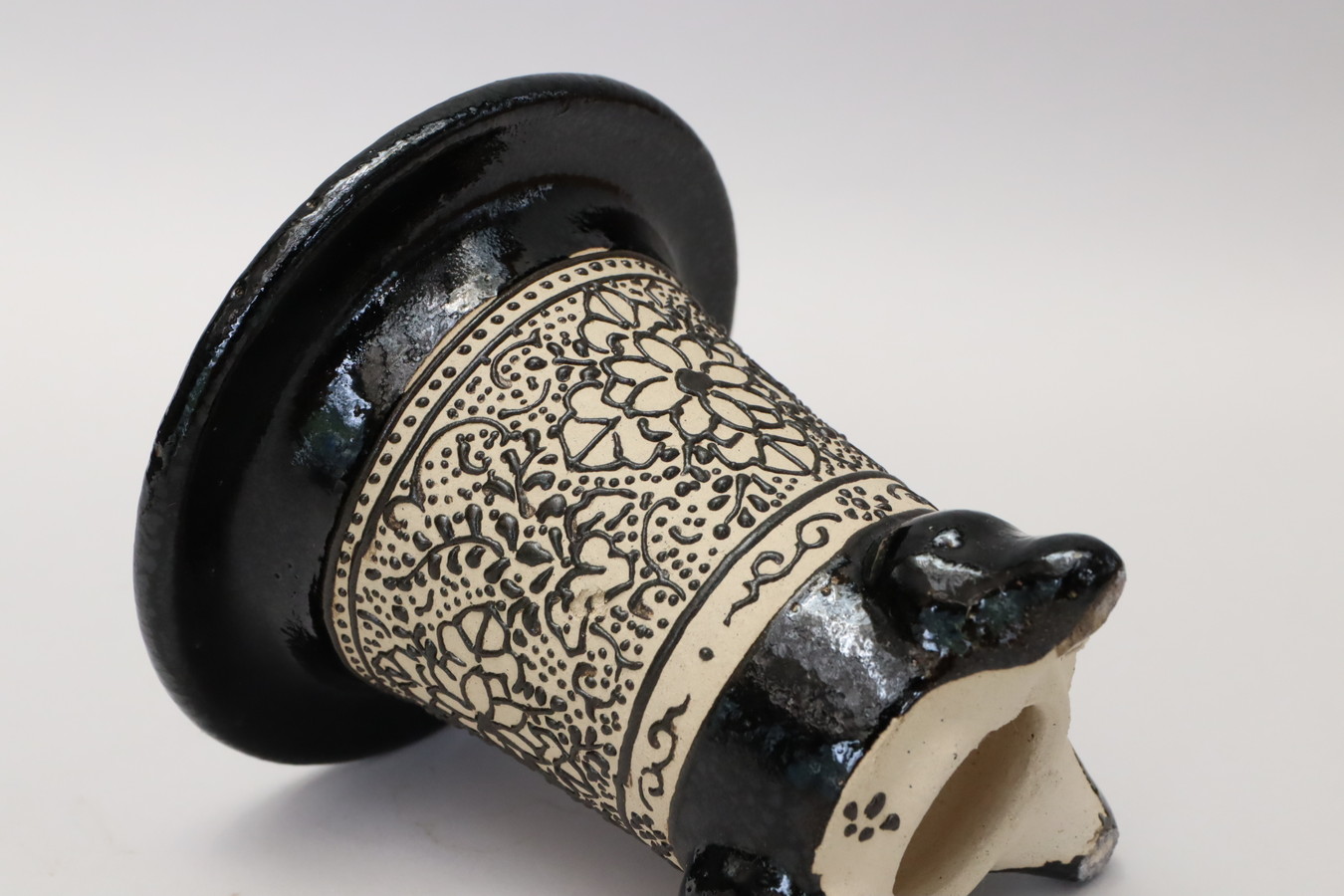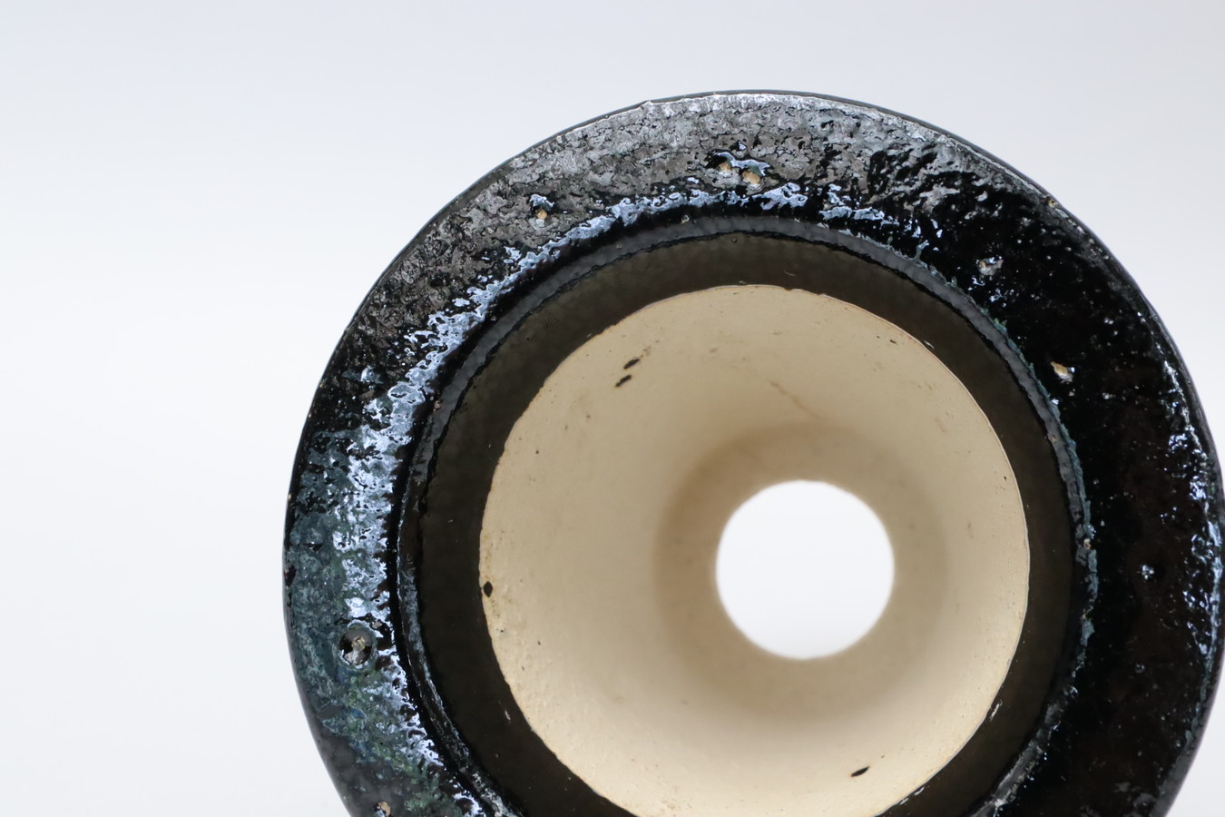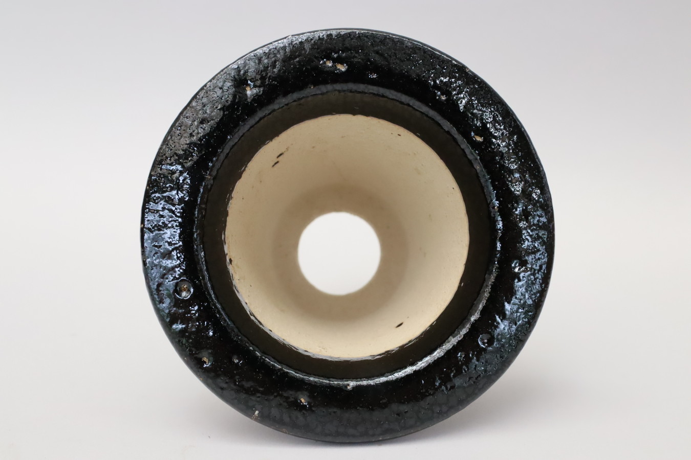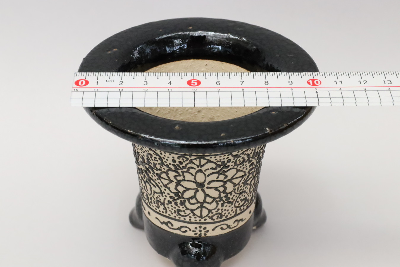 黒釉薬の艶が良い この鉢独特の釉薬の飛びがある