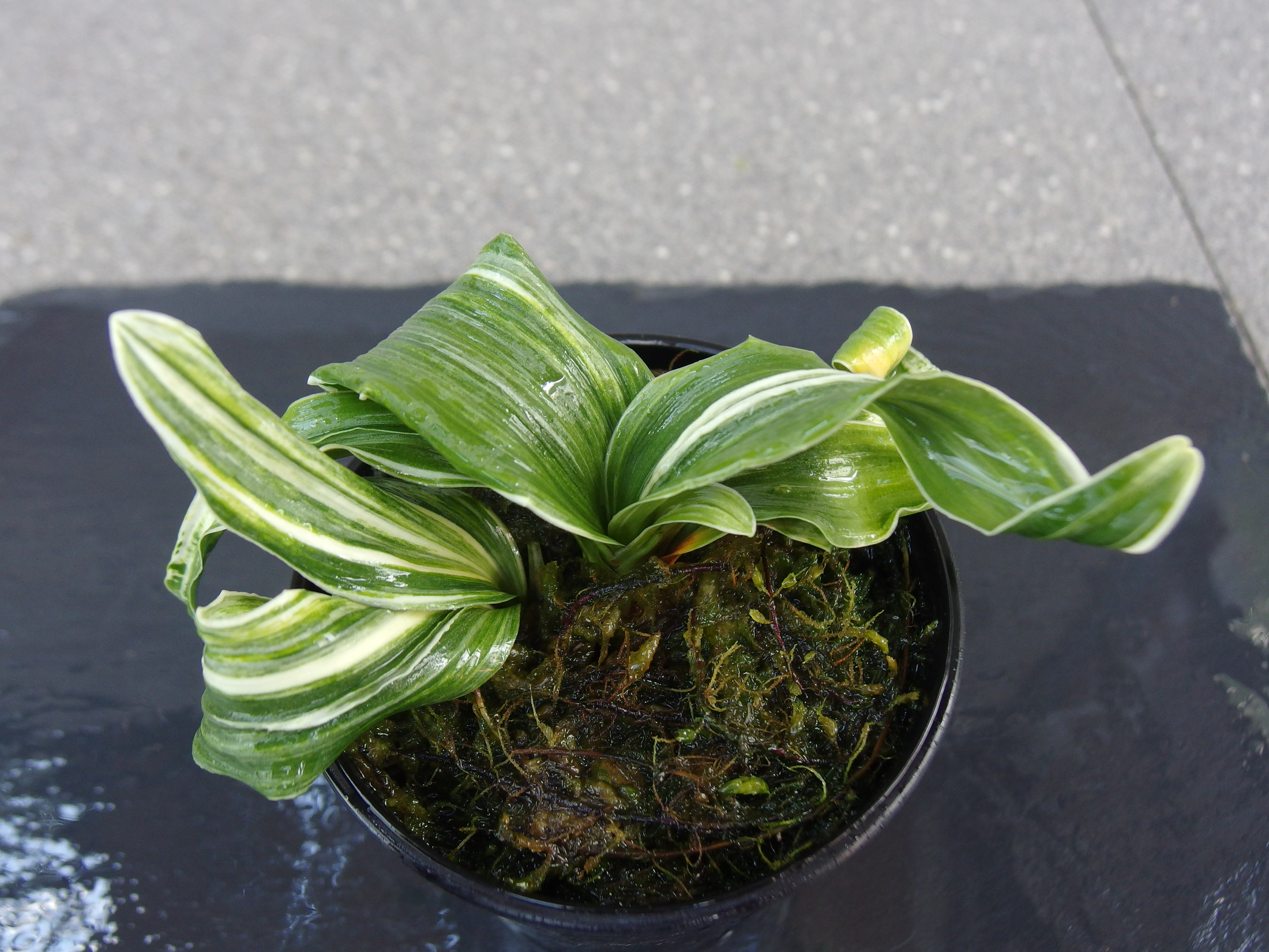 最後の6枚の写真は見本木 参考木 まだ数少ないので、写真残しています。輪波錦の上をいく、非常に稀有なおもと。最上縞。
