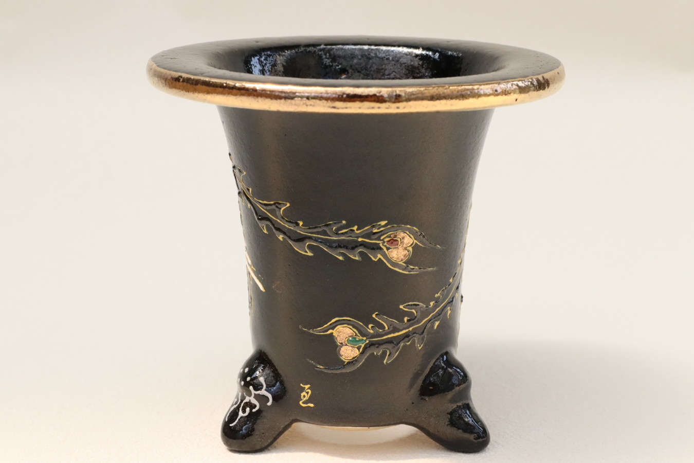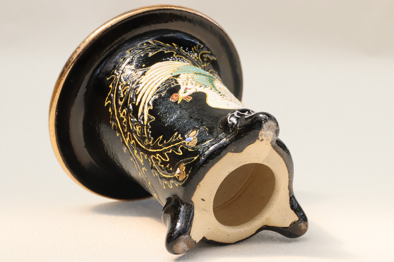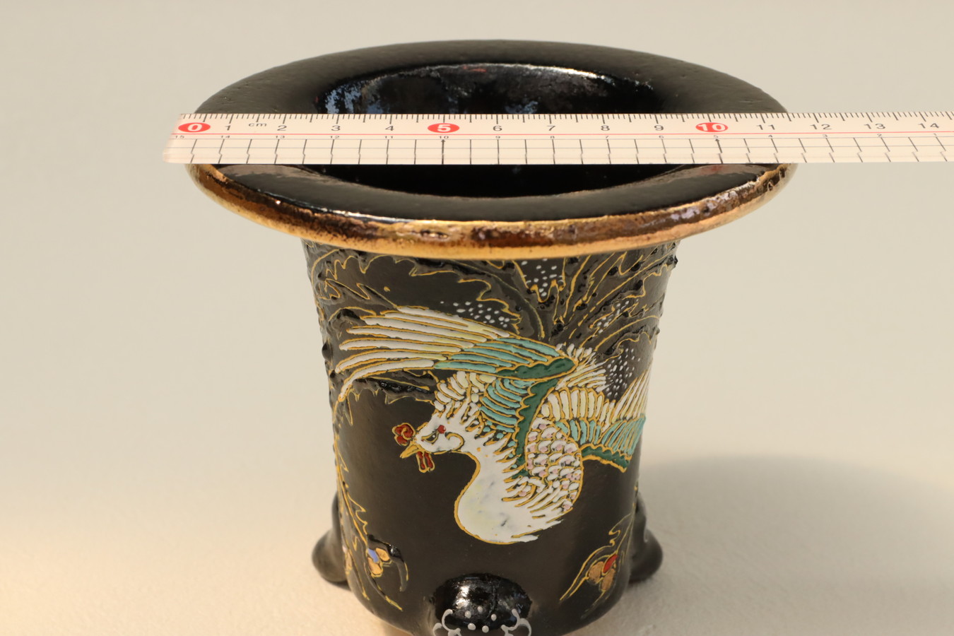 3009,黒胴 鳳凰 楽鉢 外径約11.7cm 亘サイン