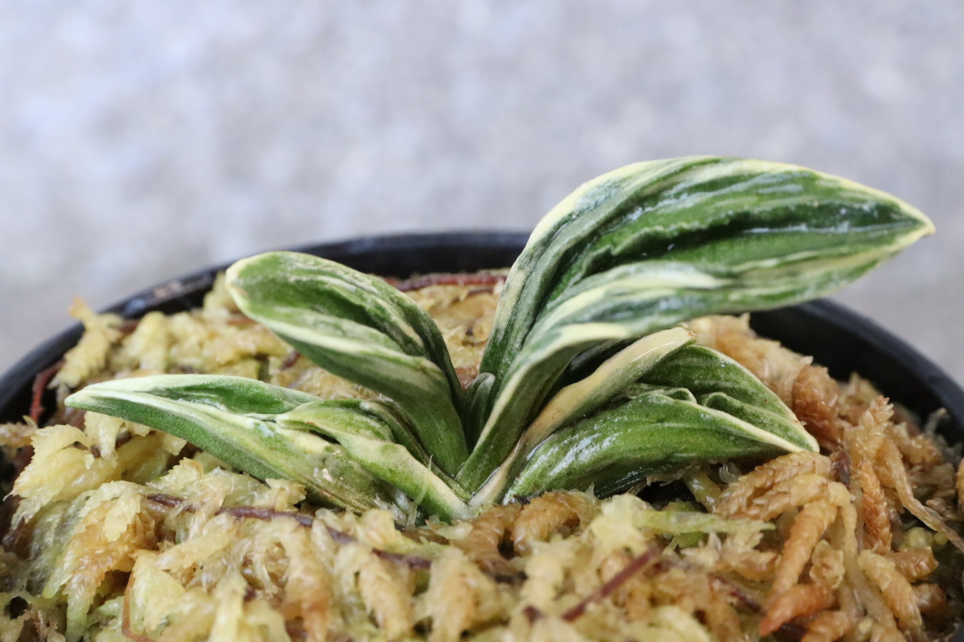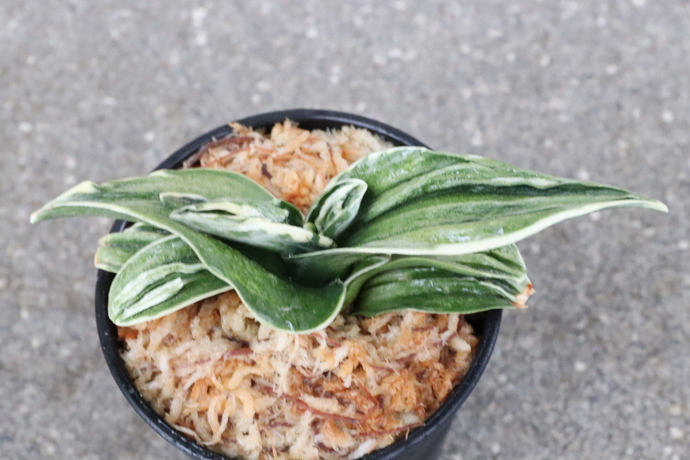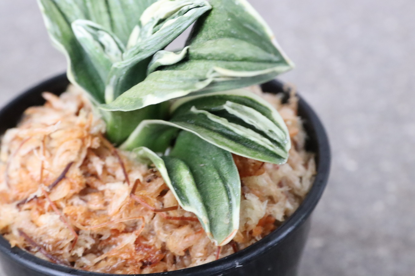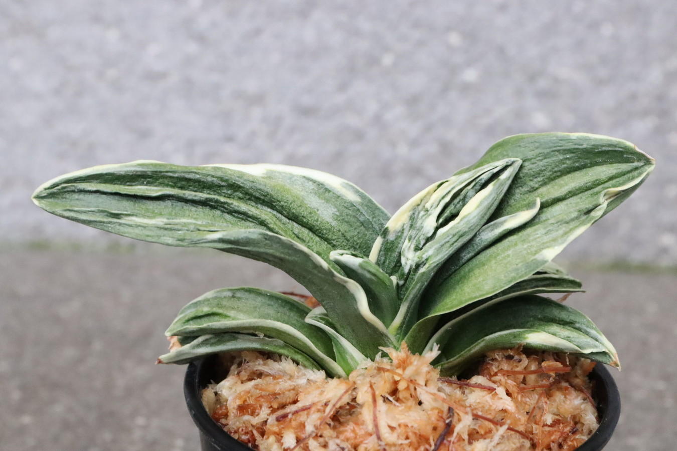 この品種の魅力は、「力和」でしか味わえない芸、丸葉の可愛らしい姿、その変化と、たくさんあります。杉山力蔵氏と岡田和吉氏が共有したため、『力和実生』と呼ばれ親しまれてました。昭和48年に待望の覆輪が完成。実生時代から常に人気で、三河地方では当時100万円以上の値が付いて、喧嘩するほどの奪い合いだったそうです(豊明園2代目談)。